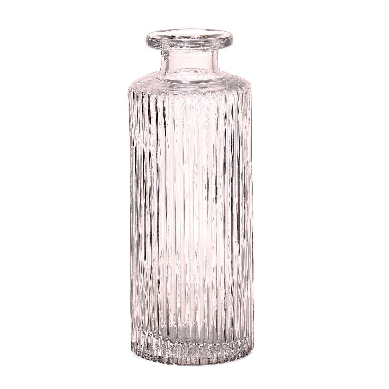 Glass vase EMANUELA, groove pattern, clear, 5.2"/13,2cm, Ø2"/5,2cm