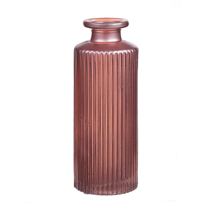 Glass vase EMANUELA, groove pattern, metallic pink, 5.2"/13,2cm, Ø2"/5,2cm