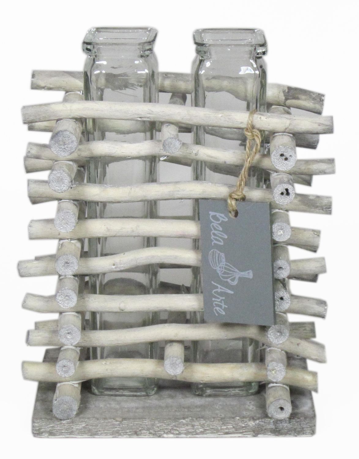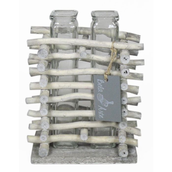 Glass vase for stem flowers SIHAM, wooden stand, 2 glasses, clear, 5.3"x3.3"x6.7"/13,5x8,5x17cm