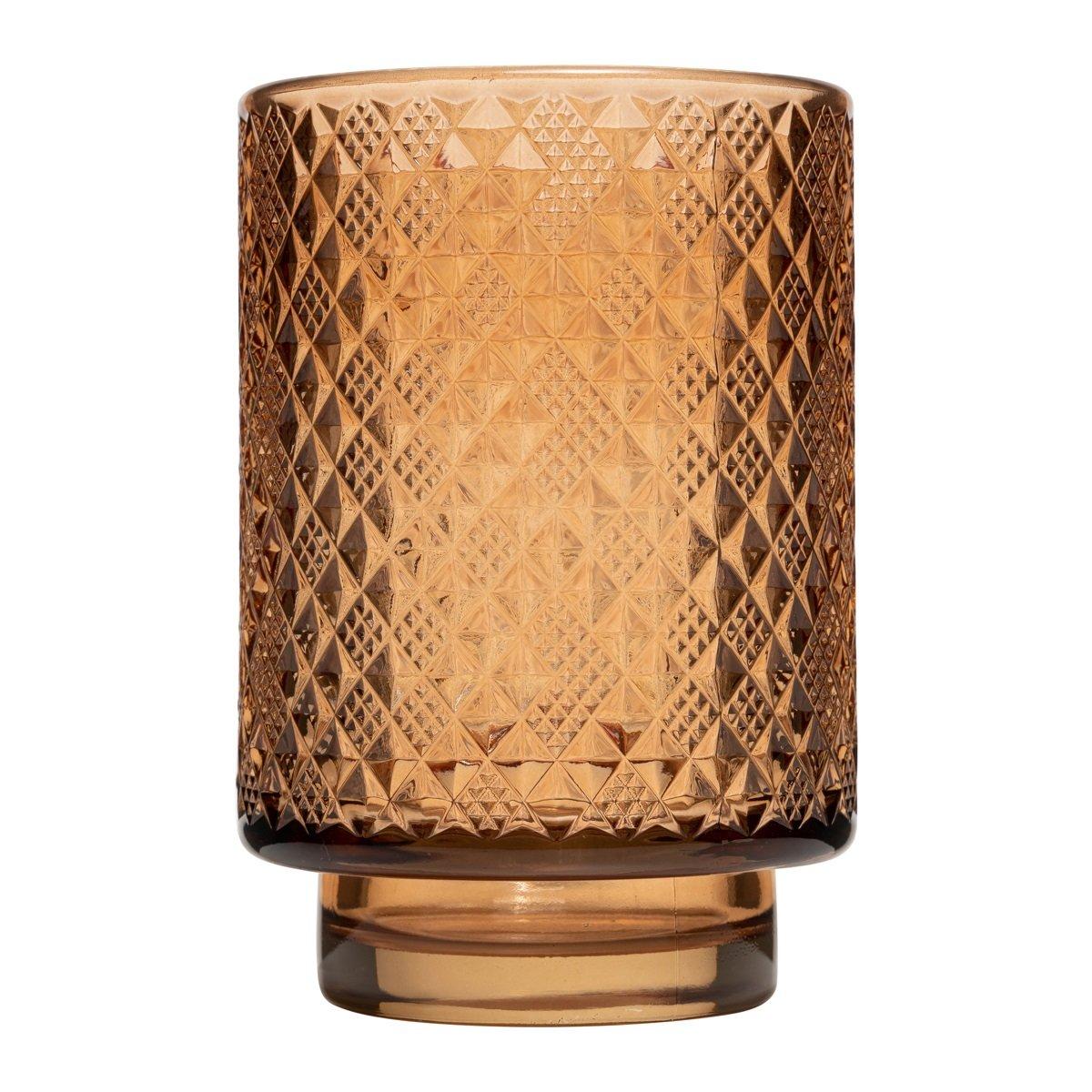 Glass votive candle holder ROXANA with foot, pattern, clear-yellow, 14,5cm, Ø10cm