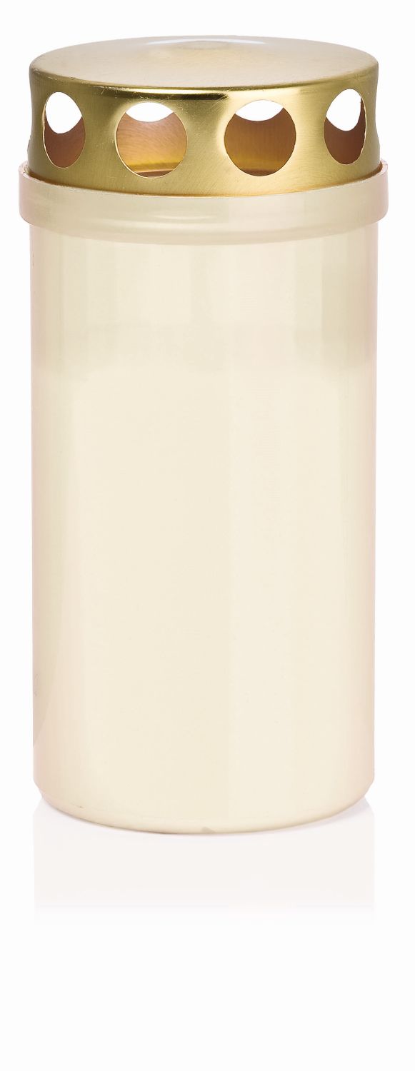 Grave candle CARMELIA with lid, white, 4.7"/12cm, Ø2.4"/6,1cm, 50h