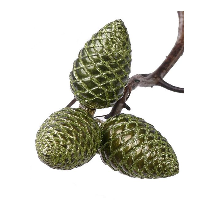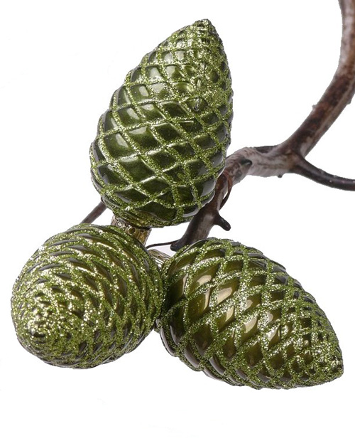Green fir cones ZENTA, Christmas tree decoration, 3 pcs, 4.3"/11cm