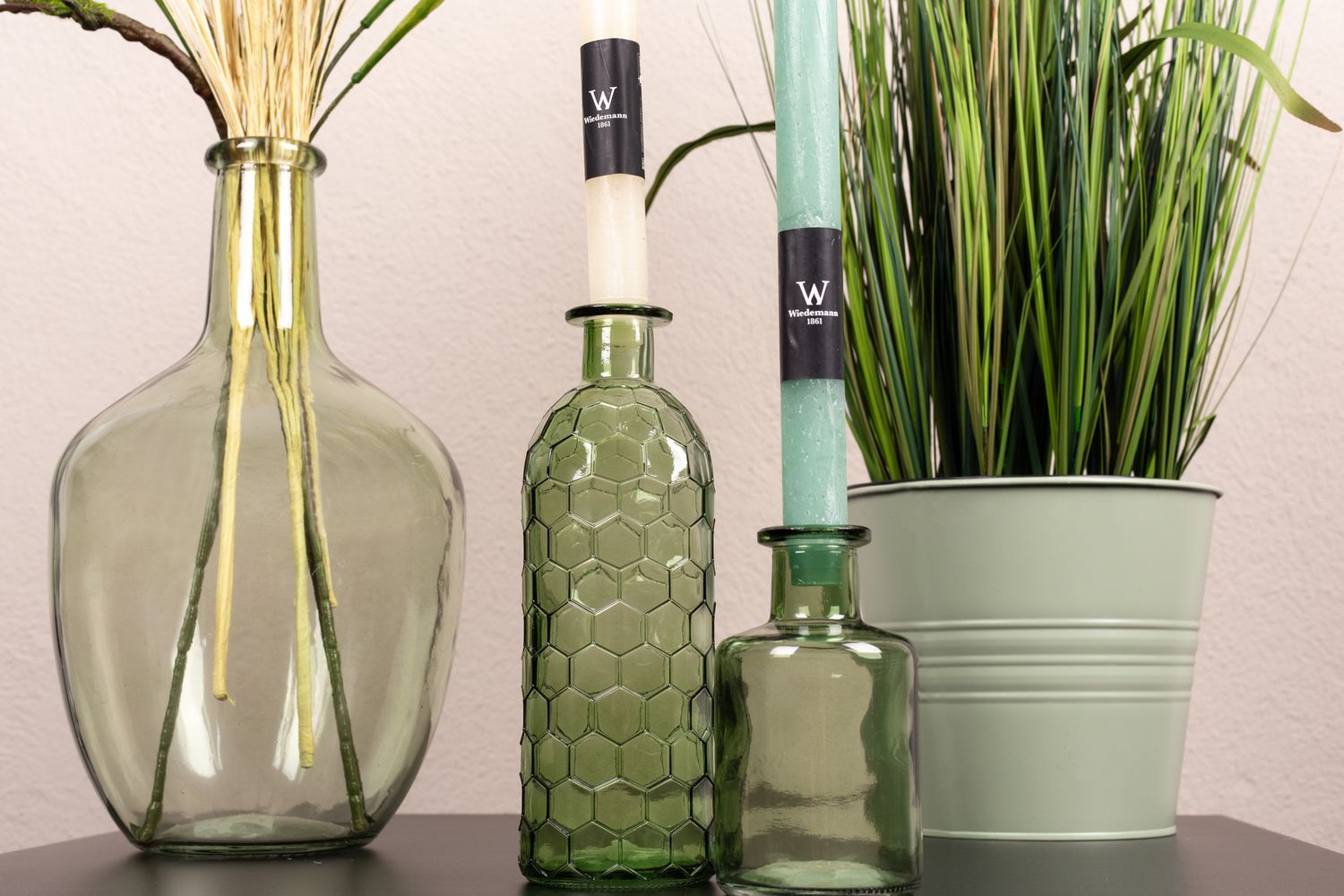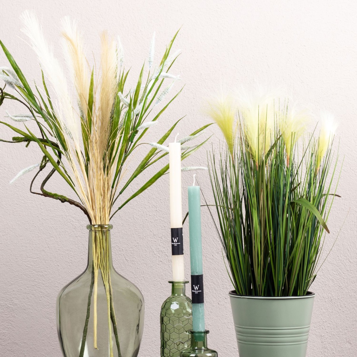 Green, green and green! The colour that is always on trend. What is relaxing and calming for the eyes is also an oasis of relaxation in the living area. Our look features grasses in various shades of green and brown, harmoniously coordinated with each other. The green bottles are not only suitable as vases, but are also perfect as candle holders. With this look, you can almost feel the gentle summer breeze. Shop the Look!