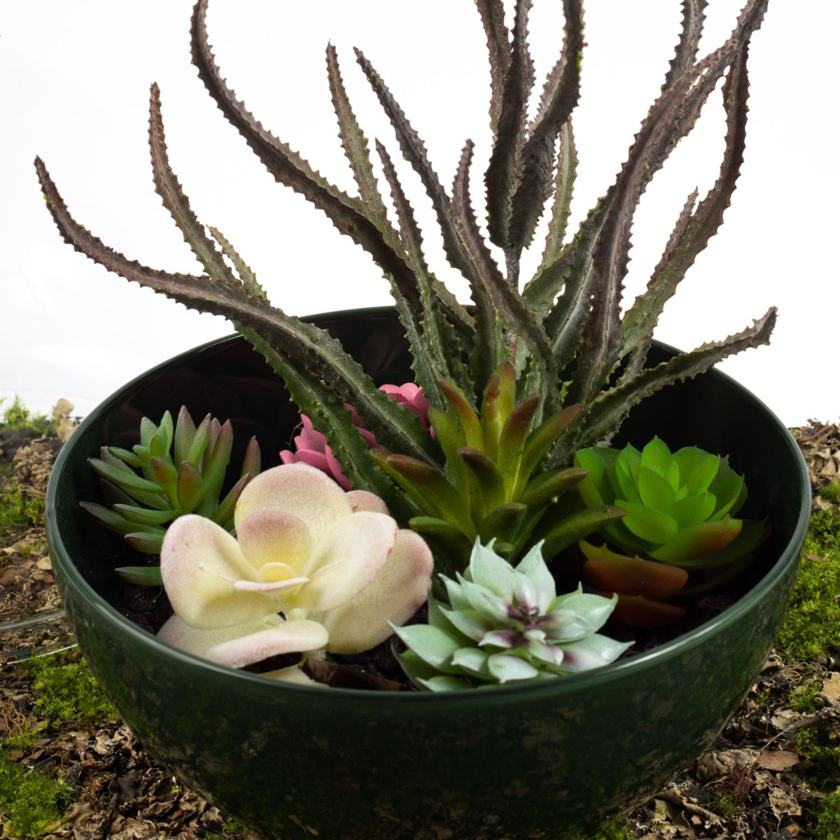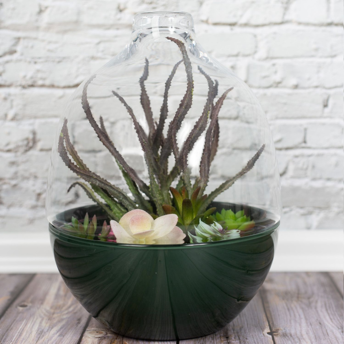 Tropical bottle garden! The colourful variety of different-shaped succulents makes the mini garden so worth seeing. It delights all generations, whether children, men or women alike. The glass bottle, which can be divided in the middle, creates its own little world that can be admired from the outside. The Euphorbia optimally fills the upper glass and gives the small succulents enough space in the lower area. Do you also want to give your living space a new shine? Shop the Look!