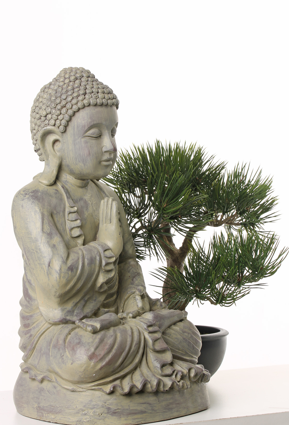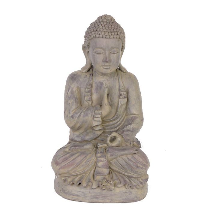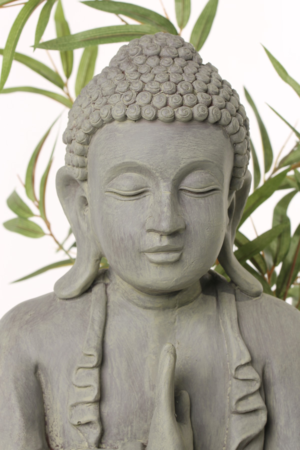 Grey decorative buddha figure SHANTA, sitting meditating, 18"/45cm