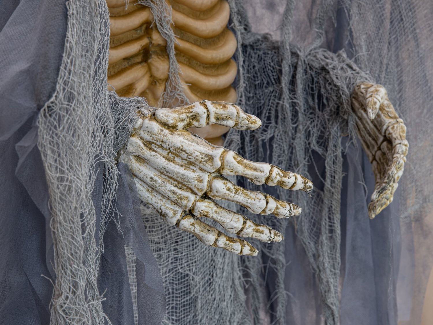 Halloween decoration angel of death skeleton HALDOR with wings, movement and sound function, LEDs, grey, 100x60x175cm