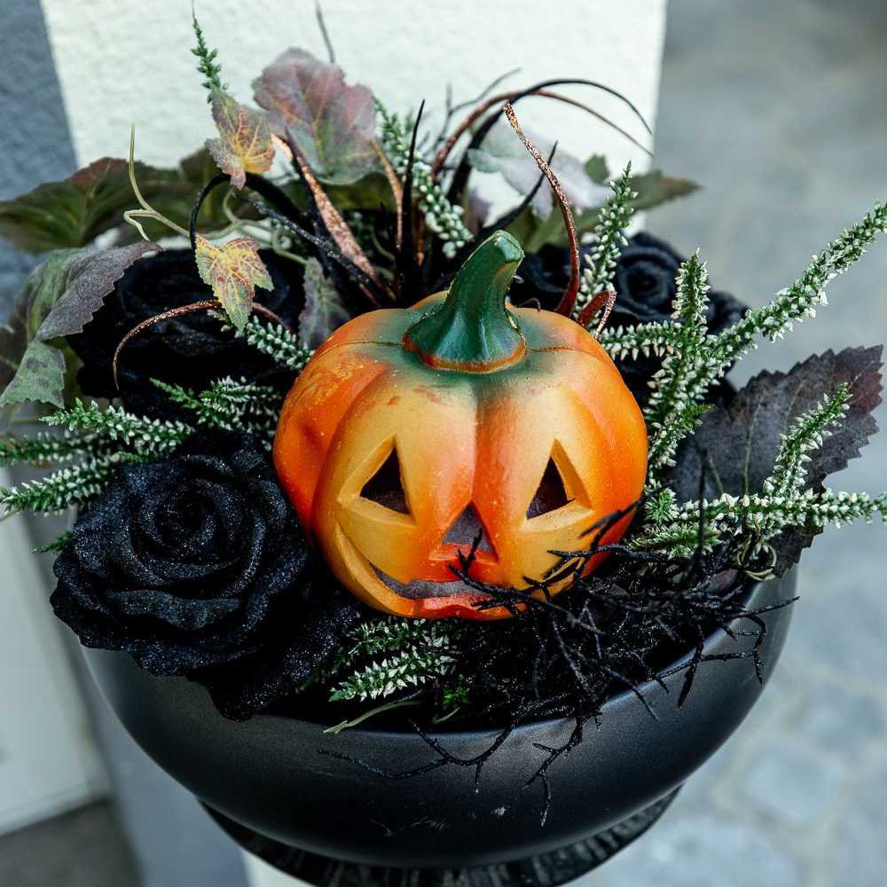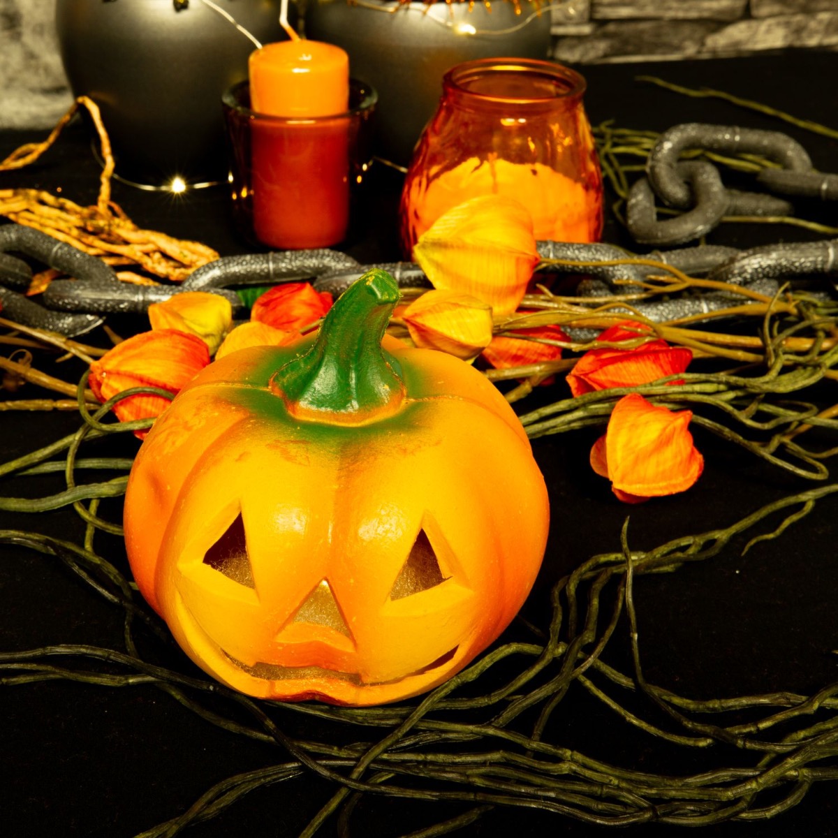 Halloween decoration pumpkin BOOGIE, orange, LED, 13cm, Ø12,5cm