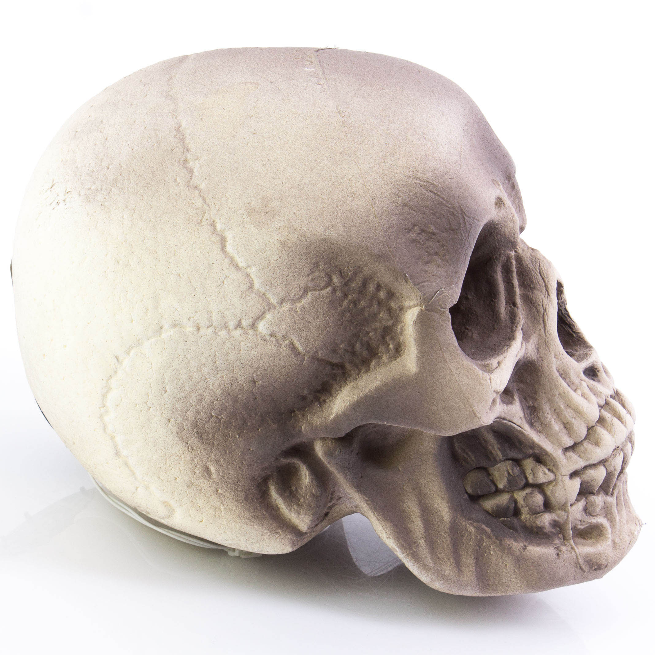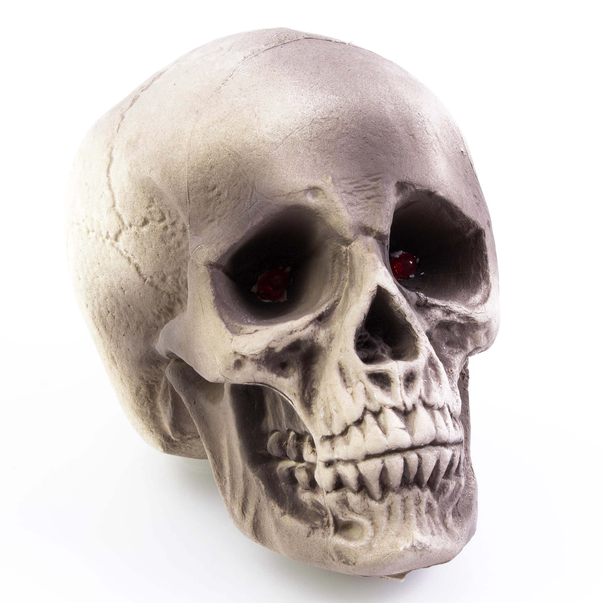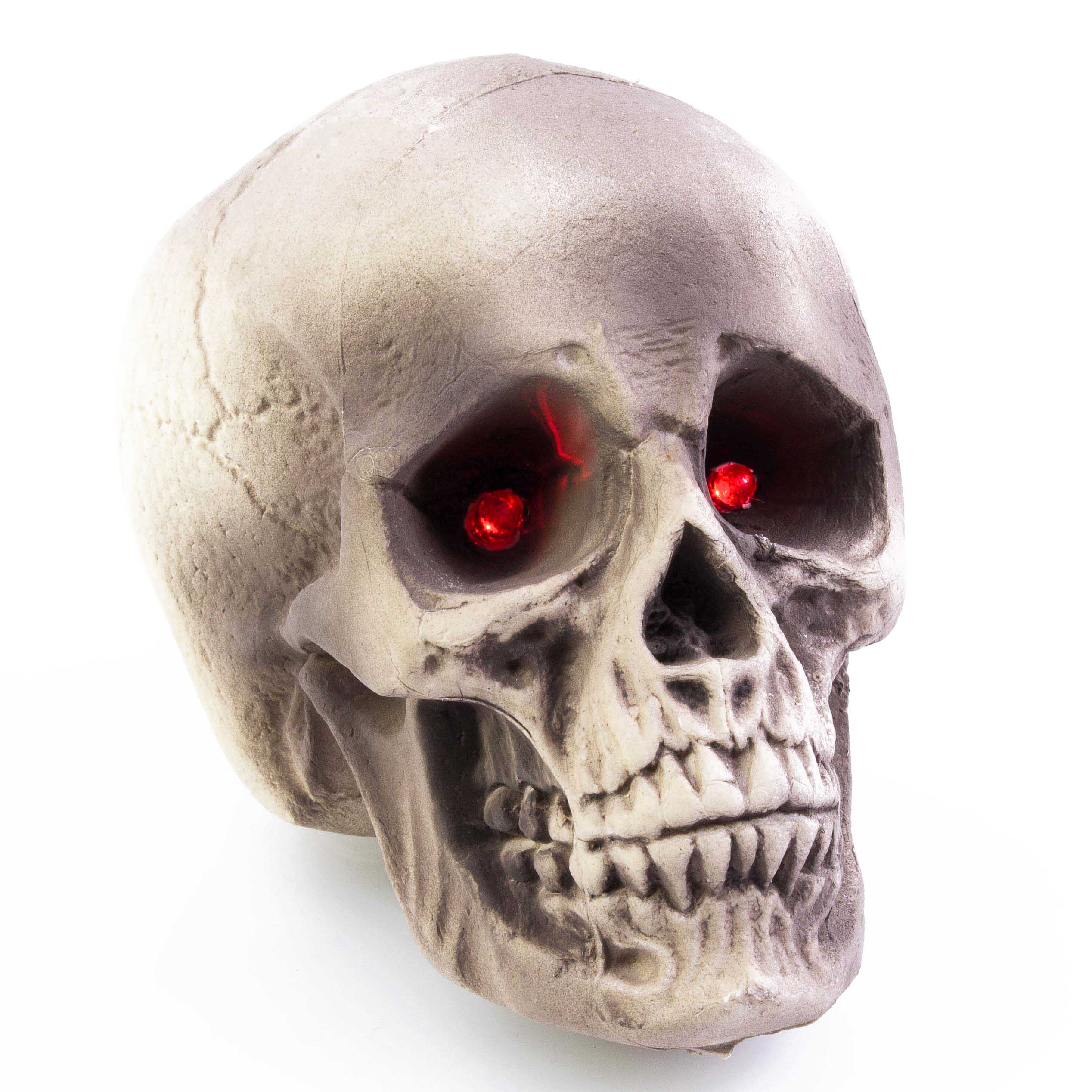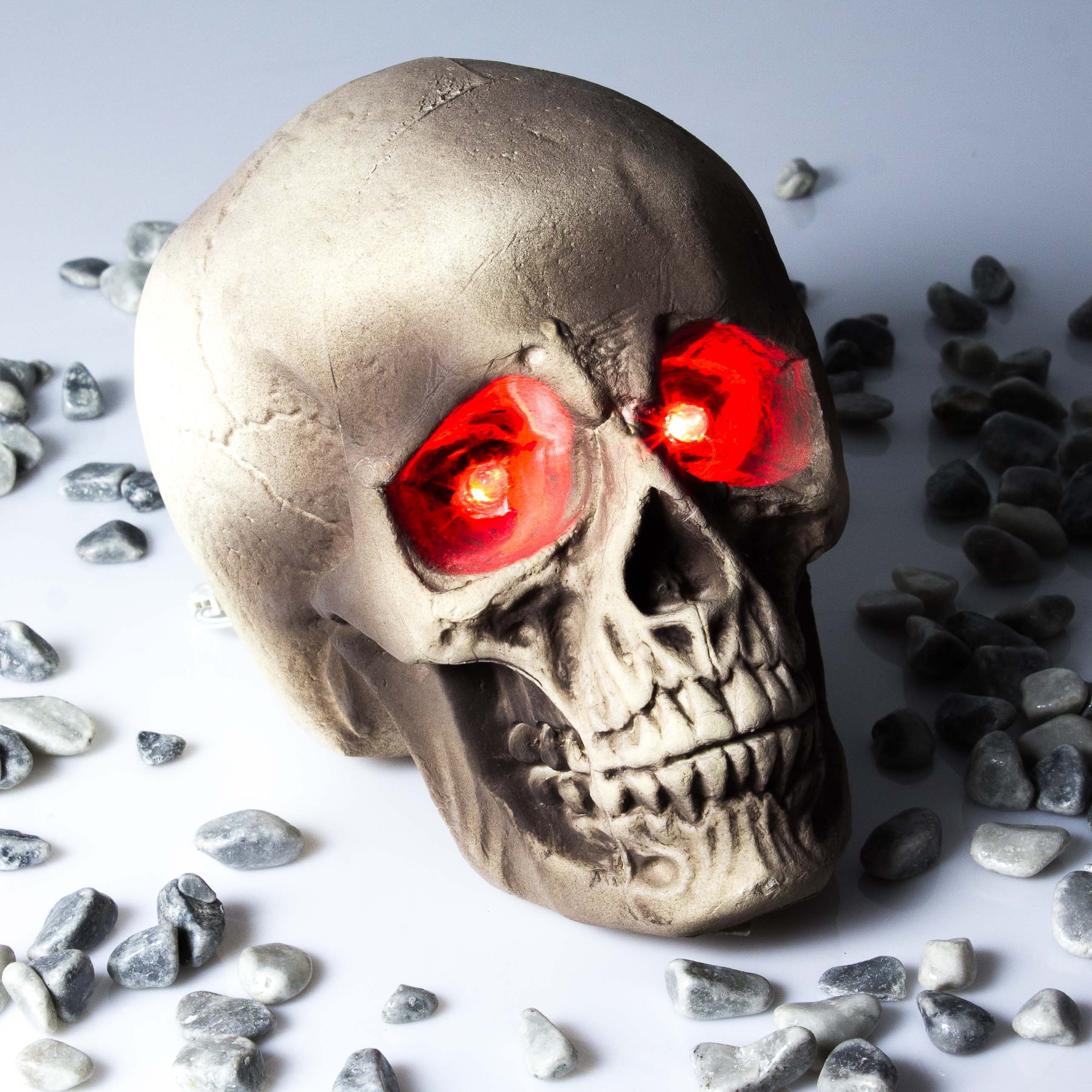 Halloween decoration skull MATTY, beige-grey, LEDs, 21x15x16cm