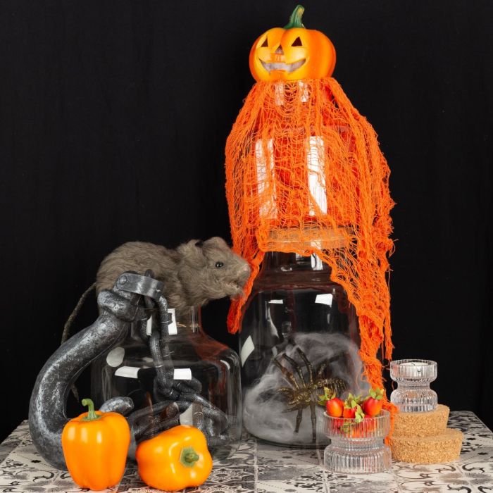 Creepy laboratory! Our storage jars can easily be transformed into a creepy laboratory for Halloween. As if a mad professor had caught a giant spider and preserved it for his research. The rat only just managed to escape. Fortunately, there is also suitable food ready for "Stoffel", the rat. Let's get away quickly before the crazy professor comes back! Shop the look!