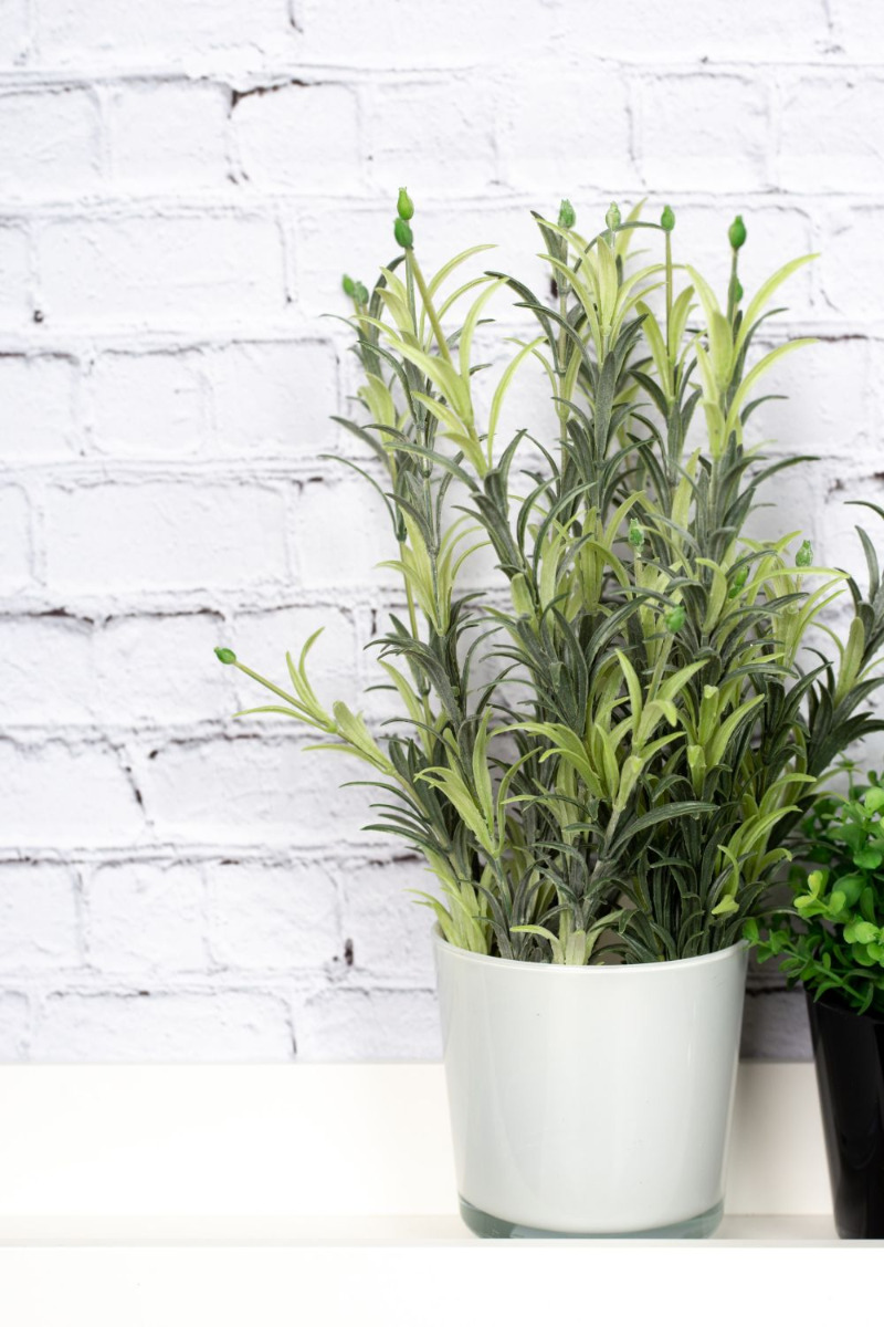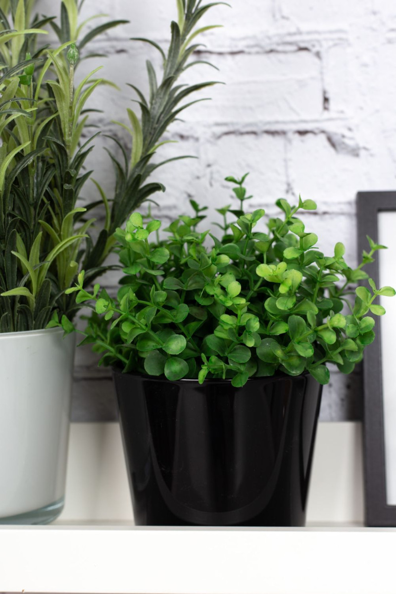 Design tip: Fill granules into the flower pots according to your wishes and, if necessary, shorten the stems of the artificial herbs with side cutters.