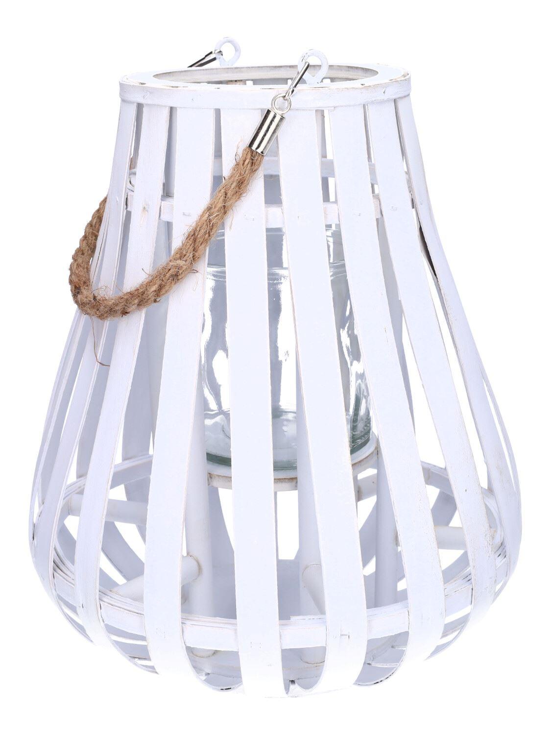 Lantern ALVARU made of rattan, with candle glass, handle, white, 31cm, Ø24cm