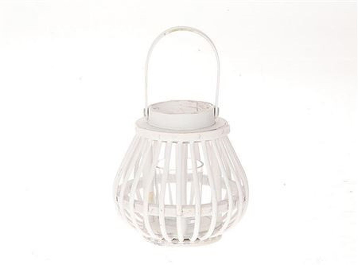 Lantern CHARITHRA with handle, wood, glass insert, white, 6"/15cm, Ø6"/15,5cm