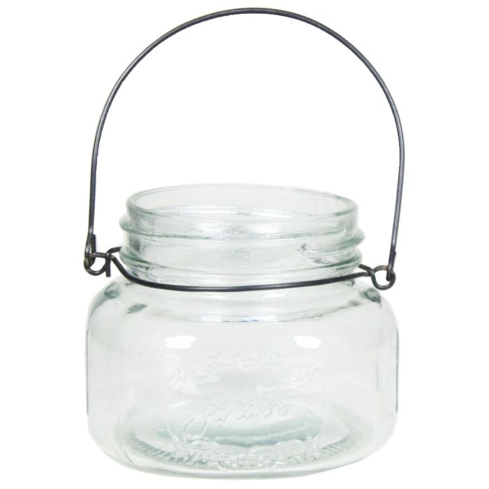 Lantern DACLAN made of glass, metal handle, clear, 3.5"/9cm, Ø4.1"/10,5cm