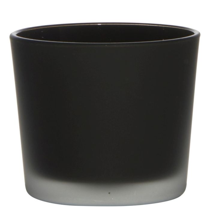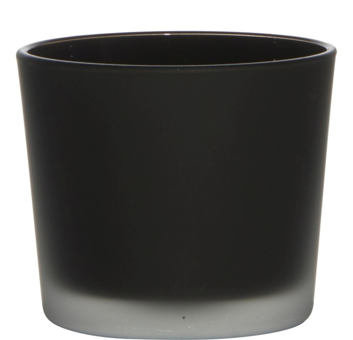 Large glass tealight holder ALENA FROST, black matt, 3.5"/9cm, Ø4"/10cm