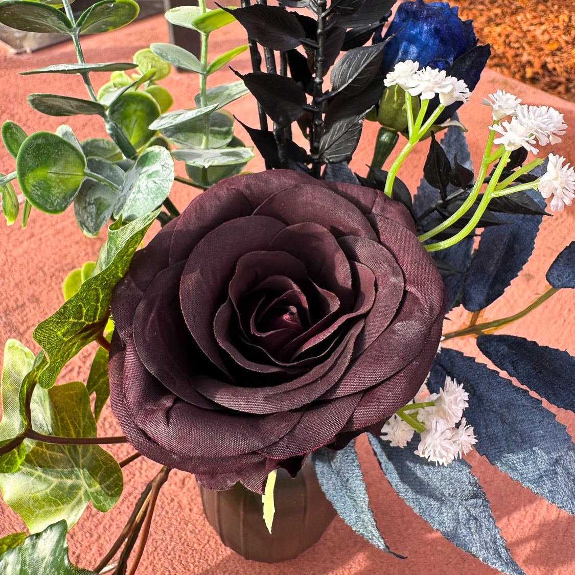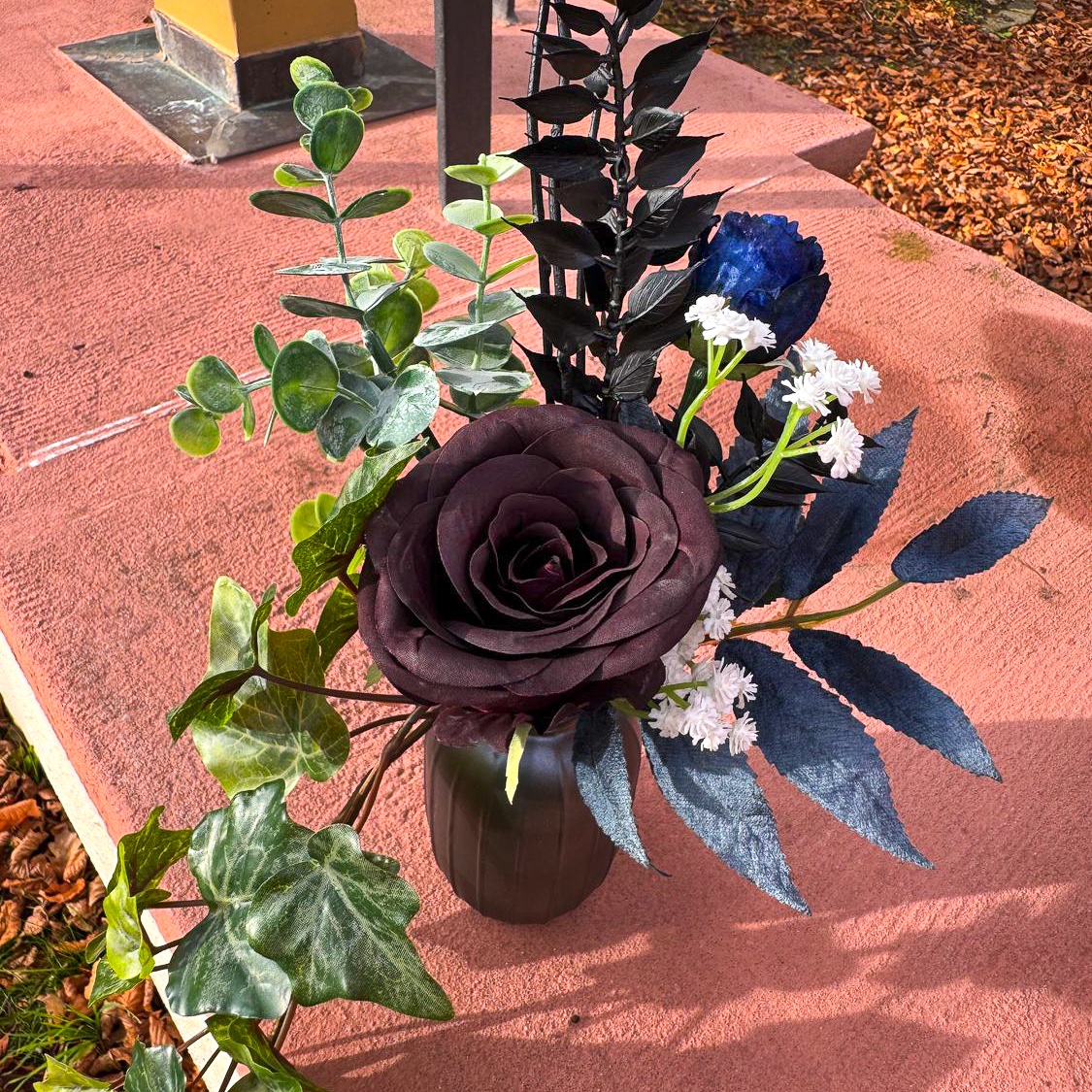 Midnight Bloom Church Bench Bouquet & Garland for the Reception – Customer request from Julie Fleur