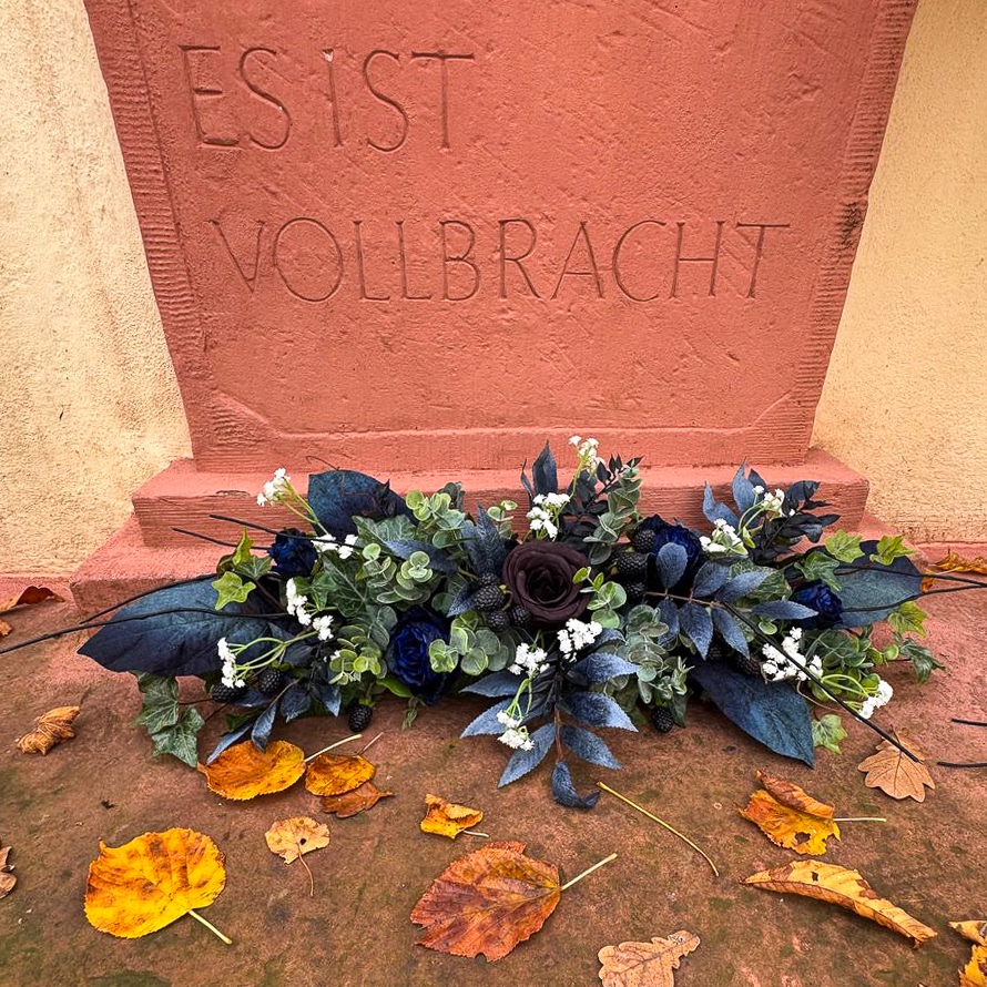 When floral art meets timeless elegance! We had the privilege of designing all the floral arrangements for a dream wedding in the south of France on an idyllic peninsula. The celebration took place in mid-November – a time when elegance and depth in colour design are particularly effective. The client wanted a modern, sophisticated concept in black and dark blue, complemented by subtle white accents for a classic wedding look. All dark blue elements were given a velvety finish, which creates an elegant, warm effect, especially in the cooler months. The floral table arrangements elegantly reflected the colour and style concept of the wedding and gave the venue a stylish, harmonious atmosphere. Would you also like to celebrate your wedding with artificial flowers? Shop the look!