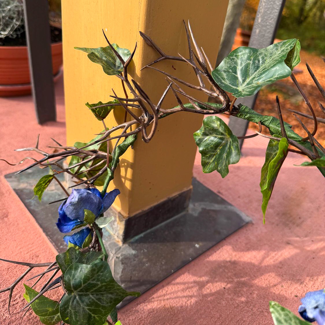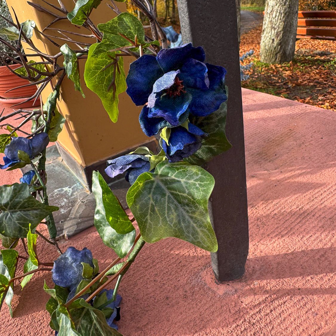 When floral art meets timeless elegance! We had the privilege of designing all the floral arrangements for a dream wedding in the south of France on an idyllic peninsula. The celebration took place in mid-November – a time when elegance and depth in colour design are particularly effective. The customer wanted a modern, sophisticated concept in black and dark blue, complemented by subtle white accents for a classic wedding look. All dark blue elements were given a velvety surface, which creates an elegant, warm effect, especially in the cooler months. A detailed wreath for the wedding rings added a delicate, symbolic accent to the ring exchange. Would you also like to celebrate your wedding with artificial flowers? Shop the look!