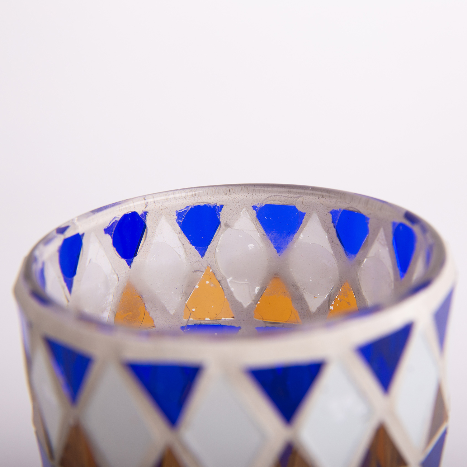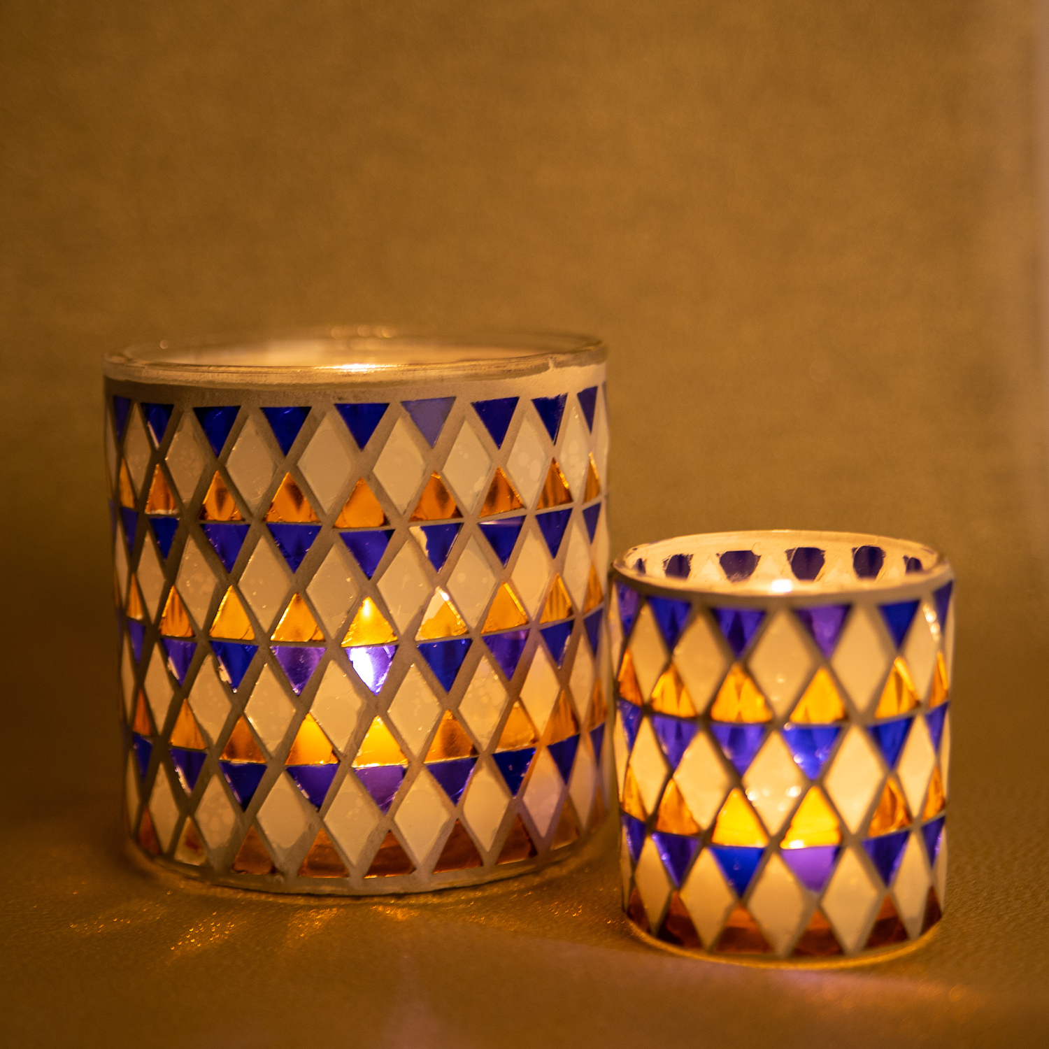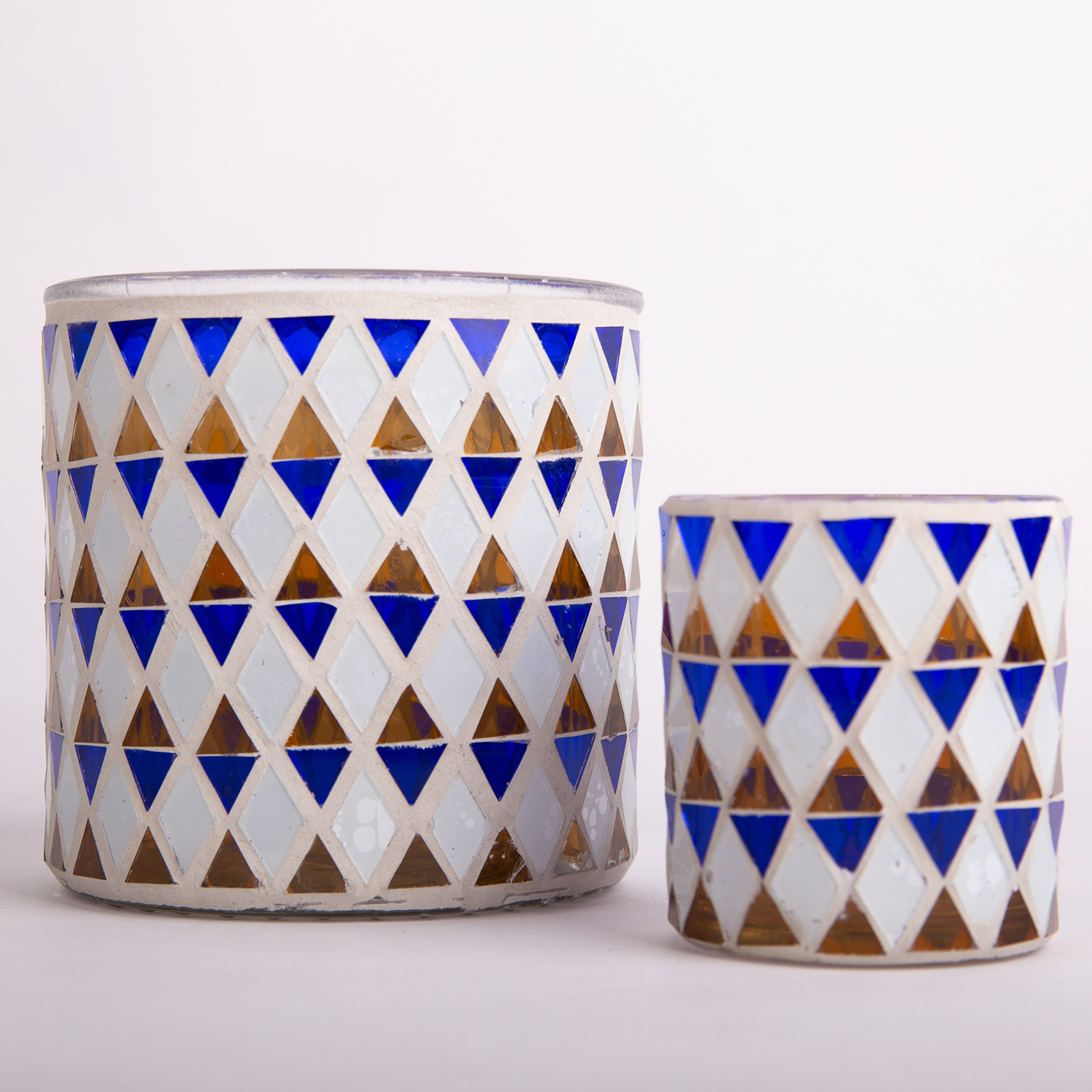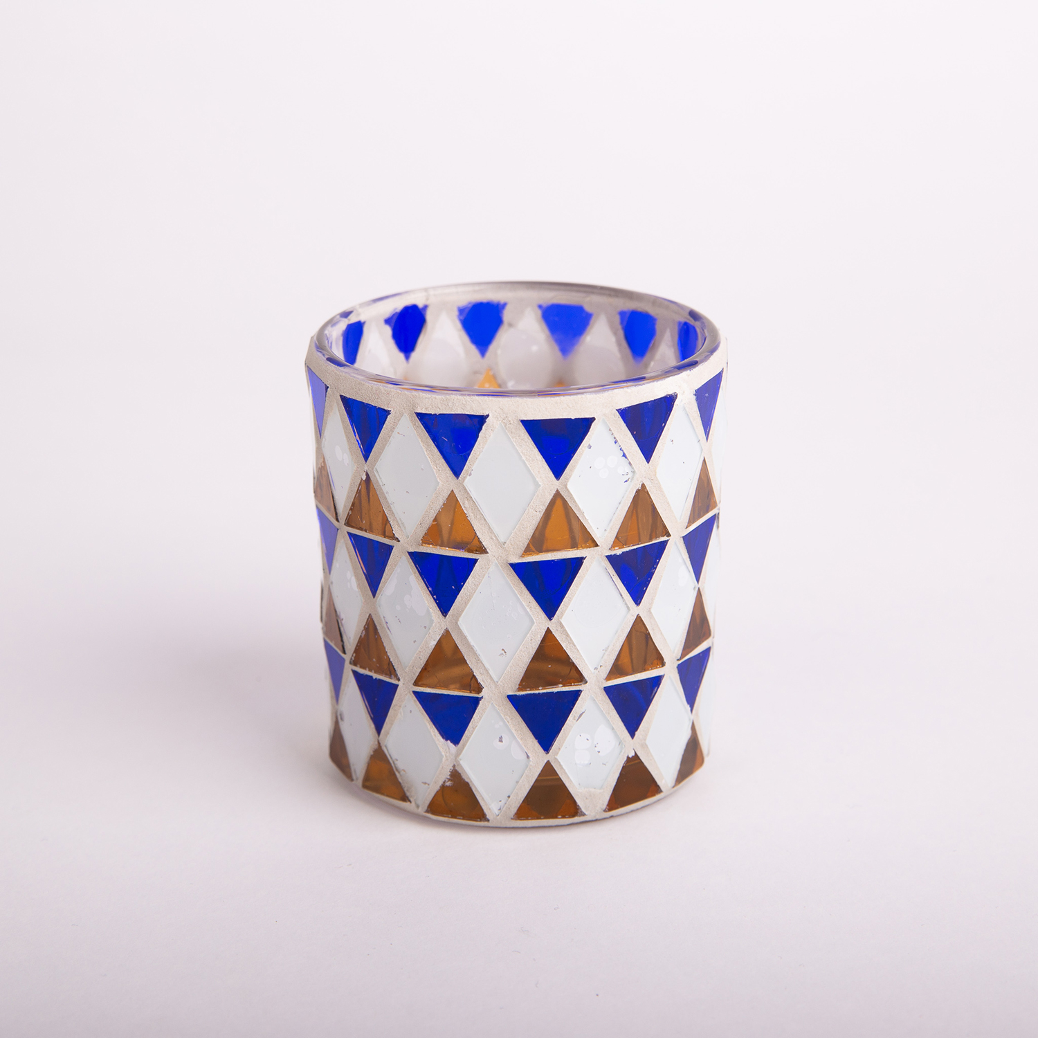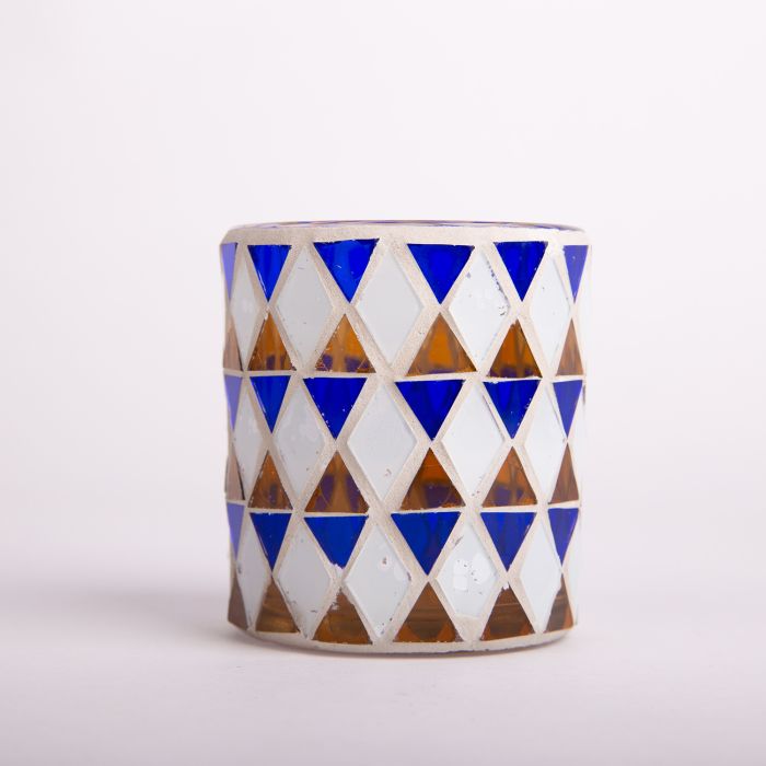 Mosaic candle jar SAMIRA, blue-white, 3.1"/8cm, Ø2.8"/7cm