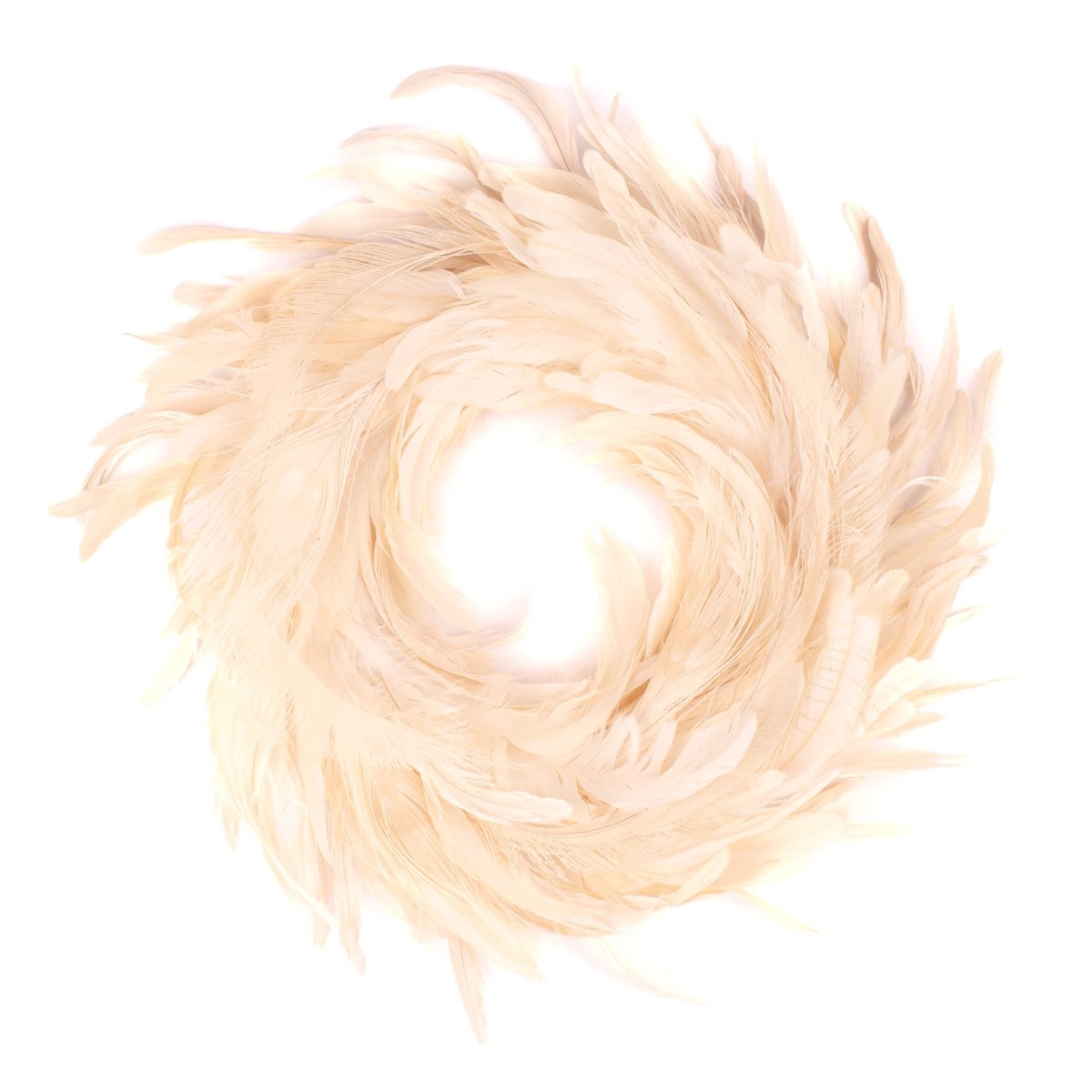Natural decoration Wreath of peacock feathers NORDIAN, white bleached, Ø16"/40cm