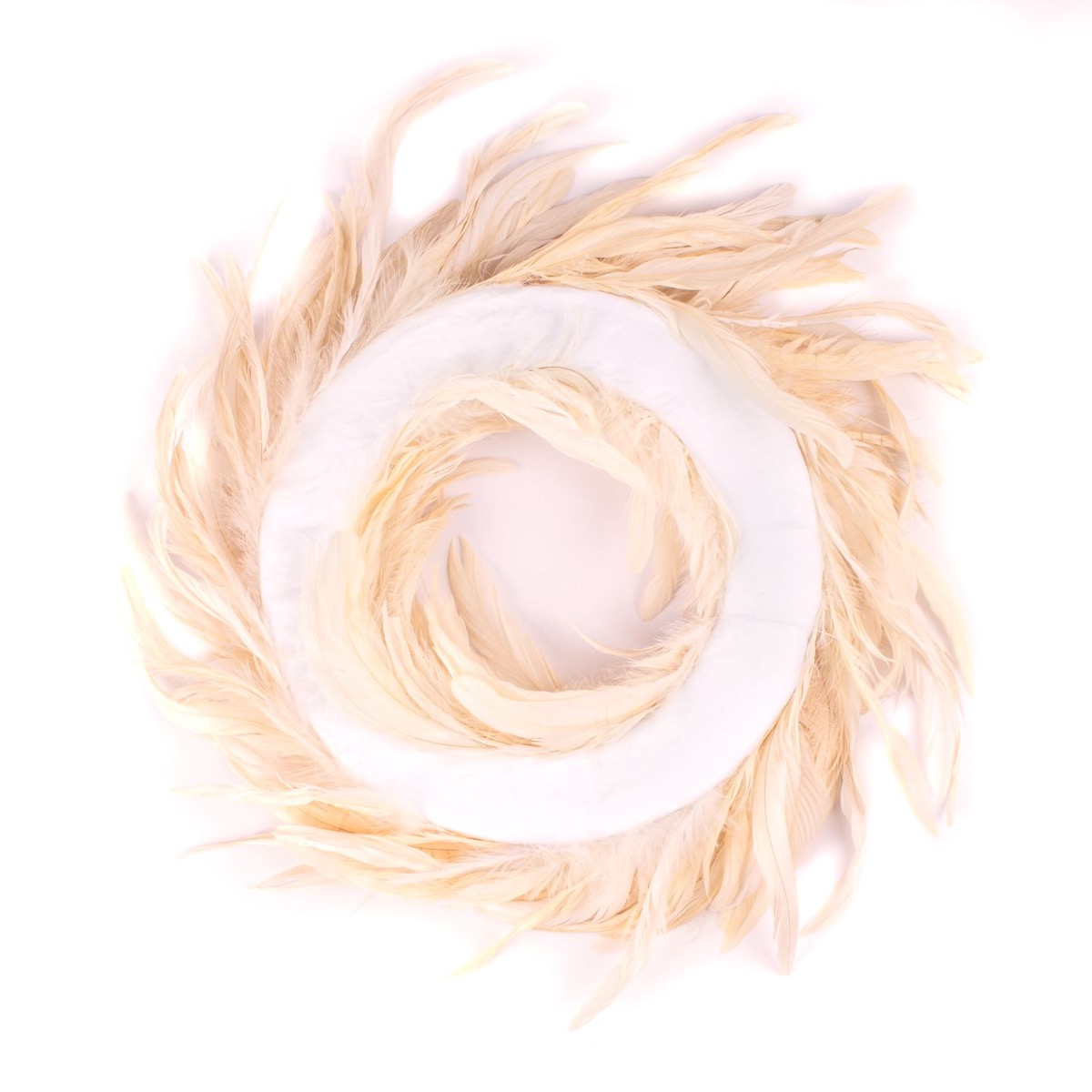Natural decoration Wreath of peacock feathers NORDIAN, white bleached, Ø20"/50cm