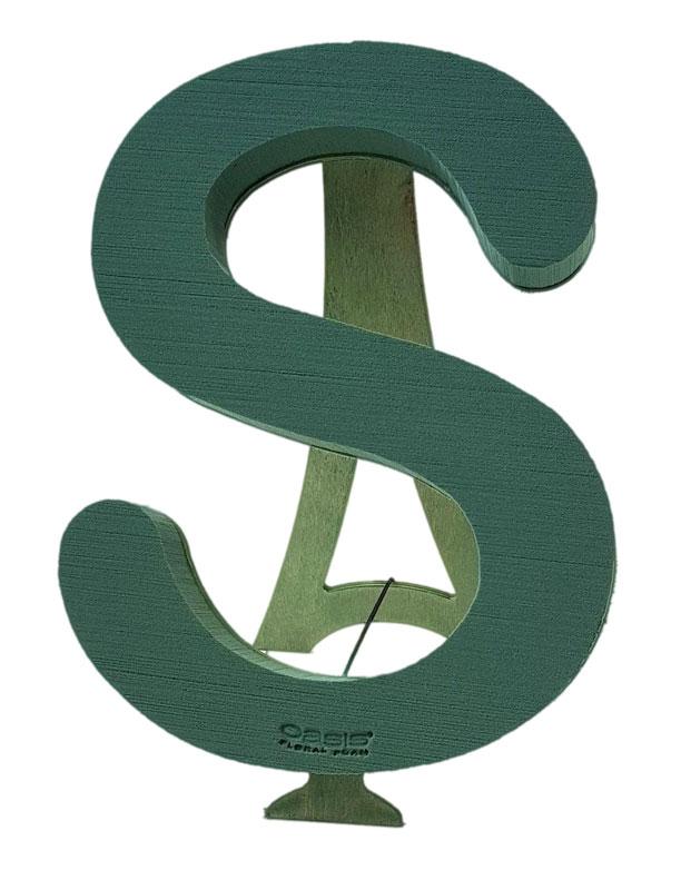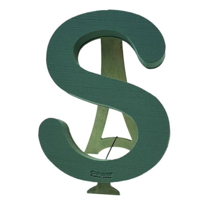 OASIS® Wet floral foam Letter S, Bioline wooden base, wooden stand, green, 16"x15"x2"/40x37x5cm