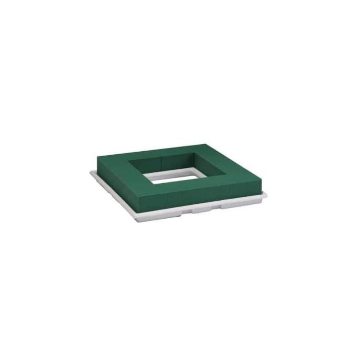 OASIS® Wet floral foam Open square wreath in paper compound tray, green, 11"x11"x1.8"/27x27x4,5cm
