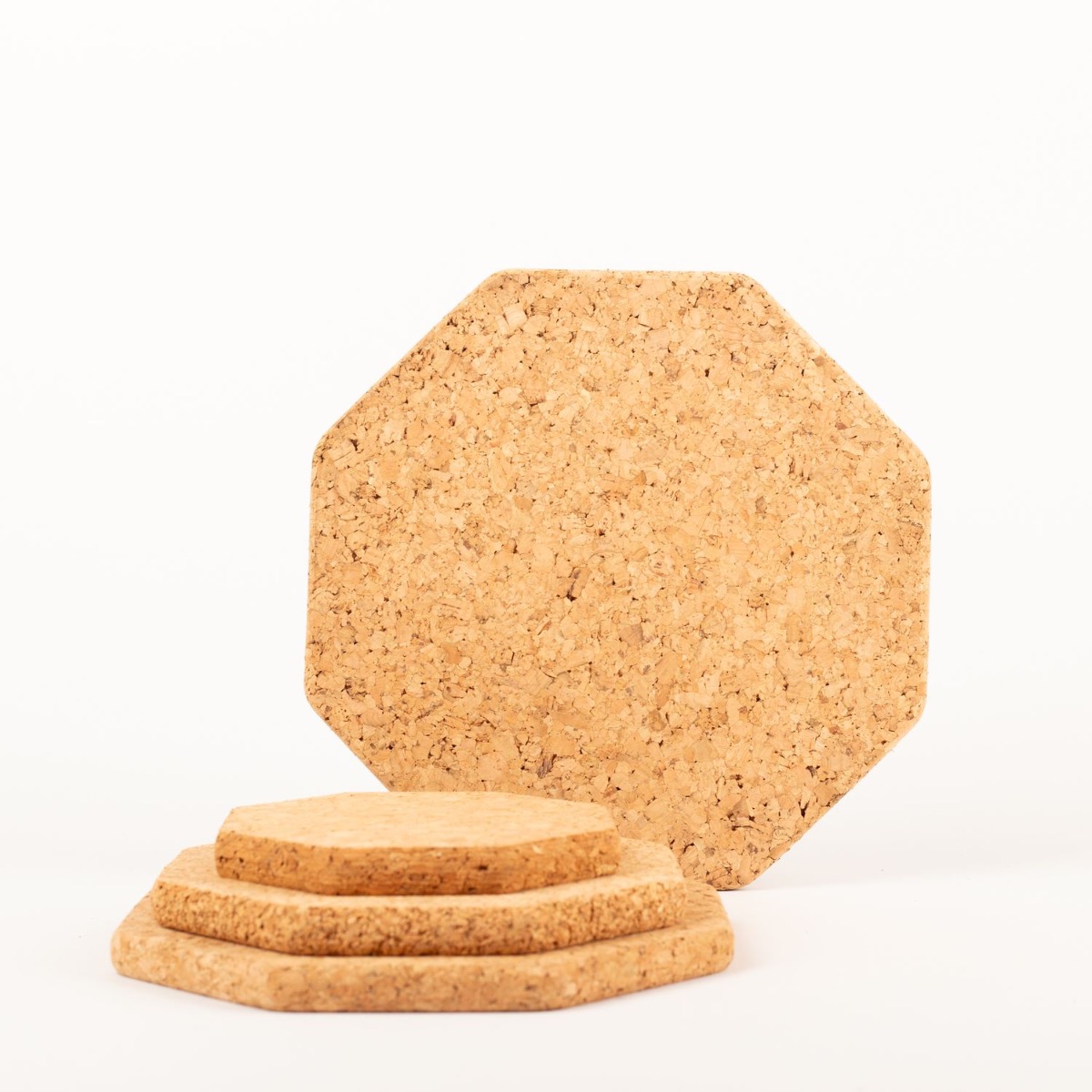 Octagonal agglomerated cork mat MANARA, natural, 0.6"/1,5cm, Ø8"/21,5cm