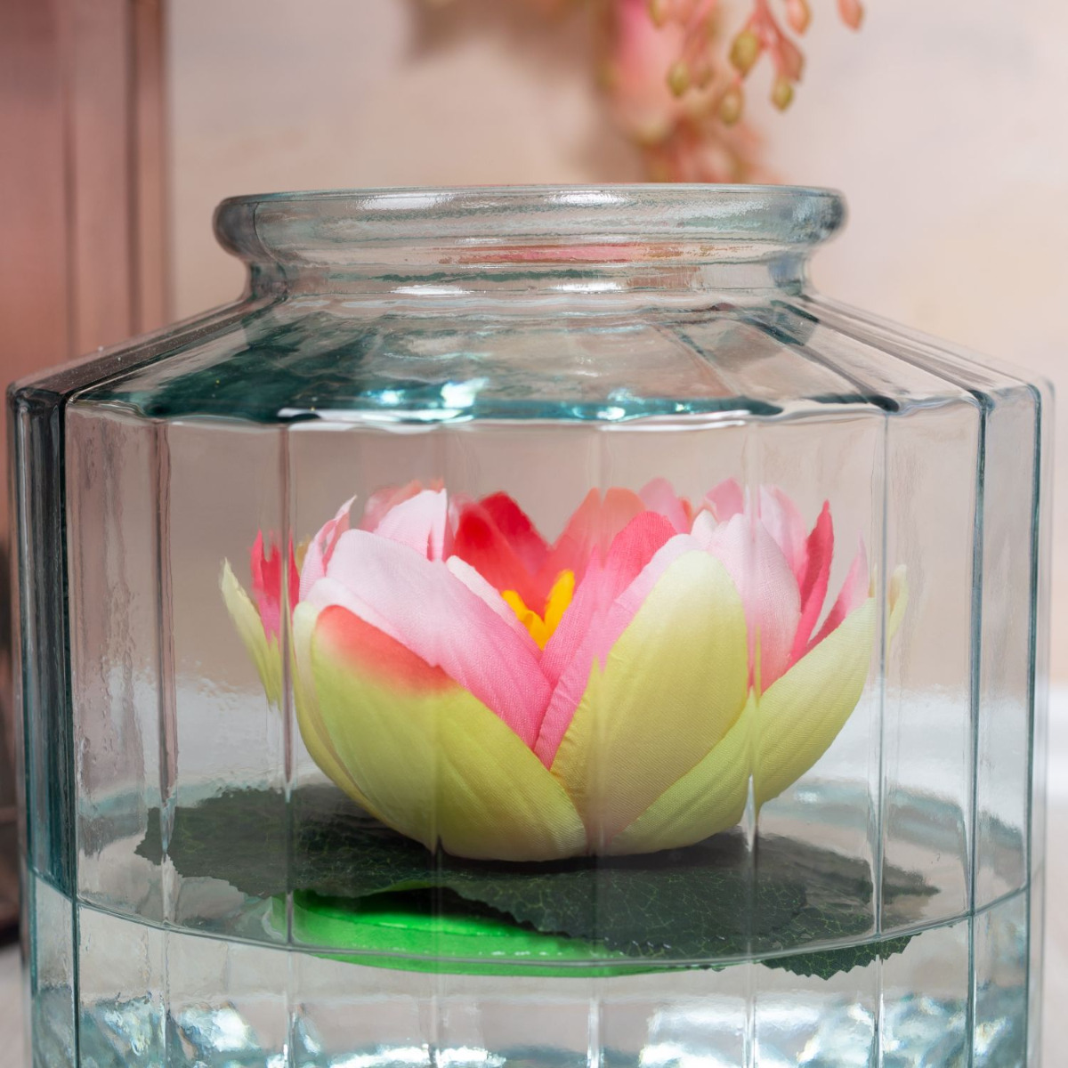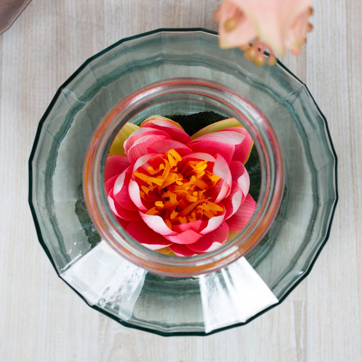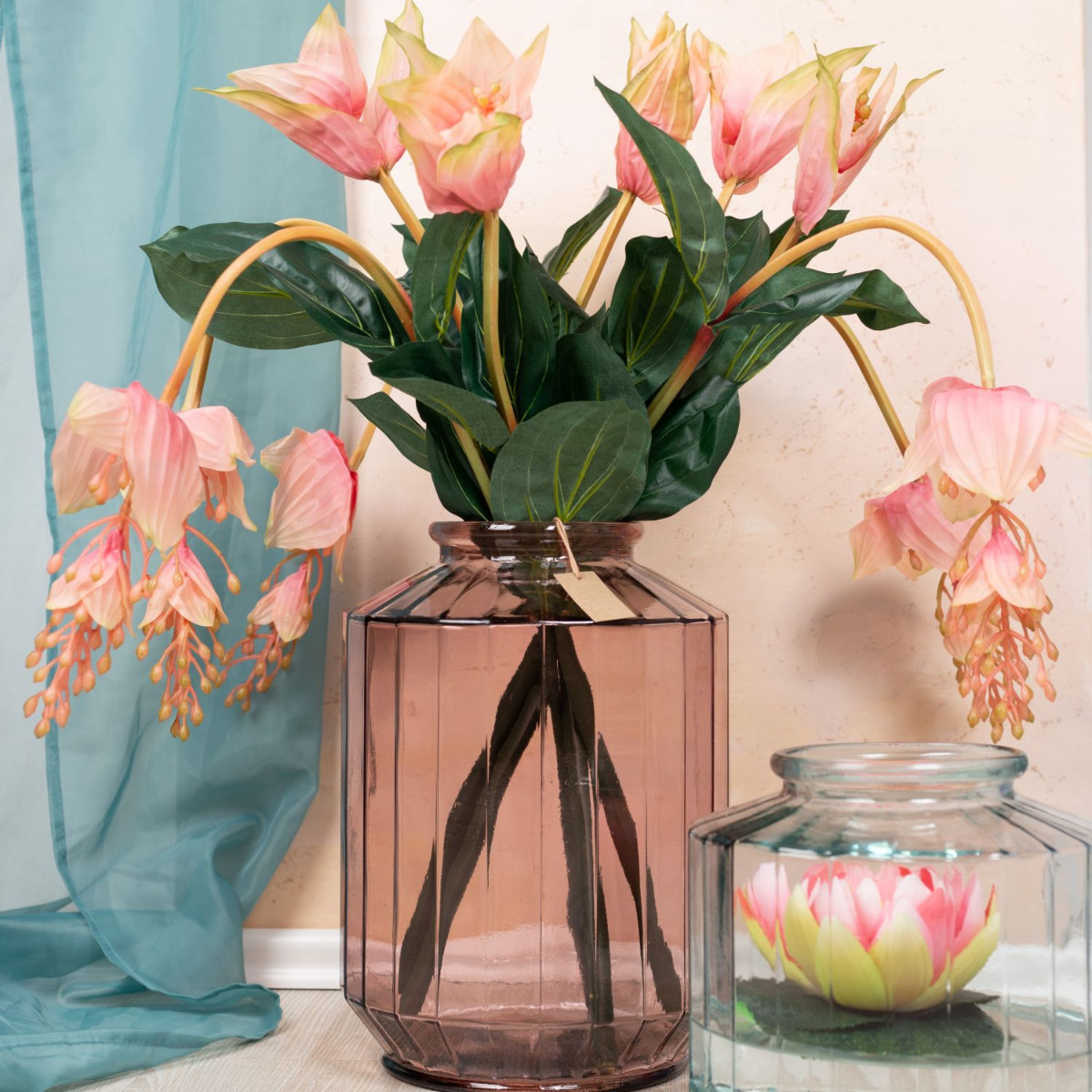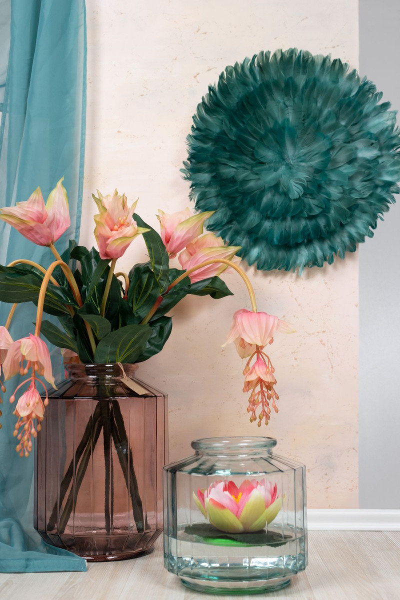 Would you like a plant as an eye-catcher in your living room, but do not do justice to the time-consuming care it requires? - That can't happen to you with our artificial lifelike Medinilla. Decorated in an equally beautiful vase made of thick-walled glass, the flower will impress your guests. In composition with the floating decorative water lily in the optically identical glass, you you will get a lovely centrepiece in your living room. Do you also want to give your living space a new shine? Shop the Look!