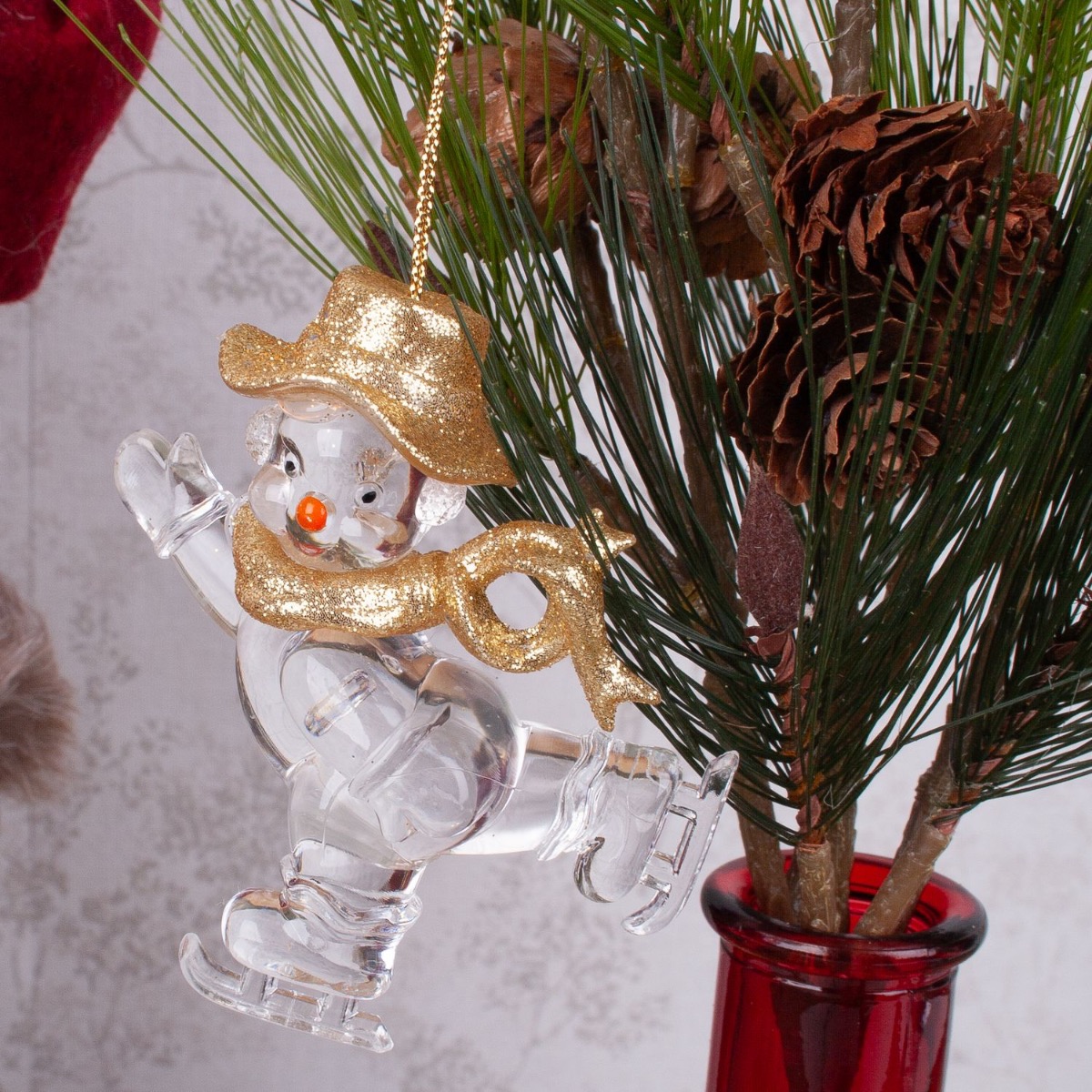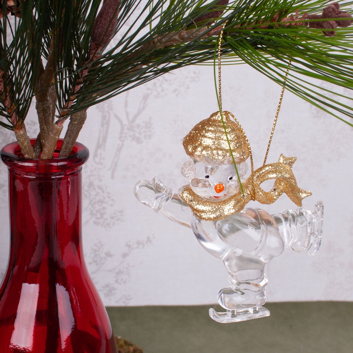 Red and green! Combined with a real tree disc, our cute Christmas decoration looks as rustic and romantic as children want Christmas to be. Our smiling Father Christmas will bring a sense of anticipation to any home. And he's even brought something with him, a shimmering red and gold zinnia. The red bottle from the ANYA range has been decorated with a real-looking pine branch and two skating snowmen. The Christmas arrangement from the HERMOSA series brings a little glamour into your home. Shop the look!