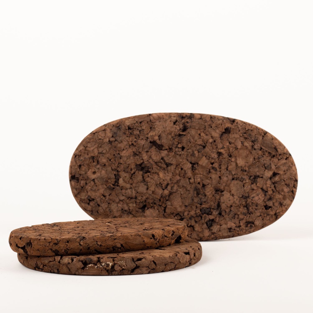 Oval agglomerated cork mat MANARA, dark, 11"x6"x0.7"/29x16x1,8cm