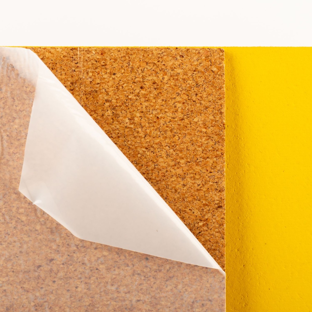 Pin board made of cork BASMA, self-adhesive, 2 boards, yellow, 20"x16"x0.2"/50x40x0,4cm