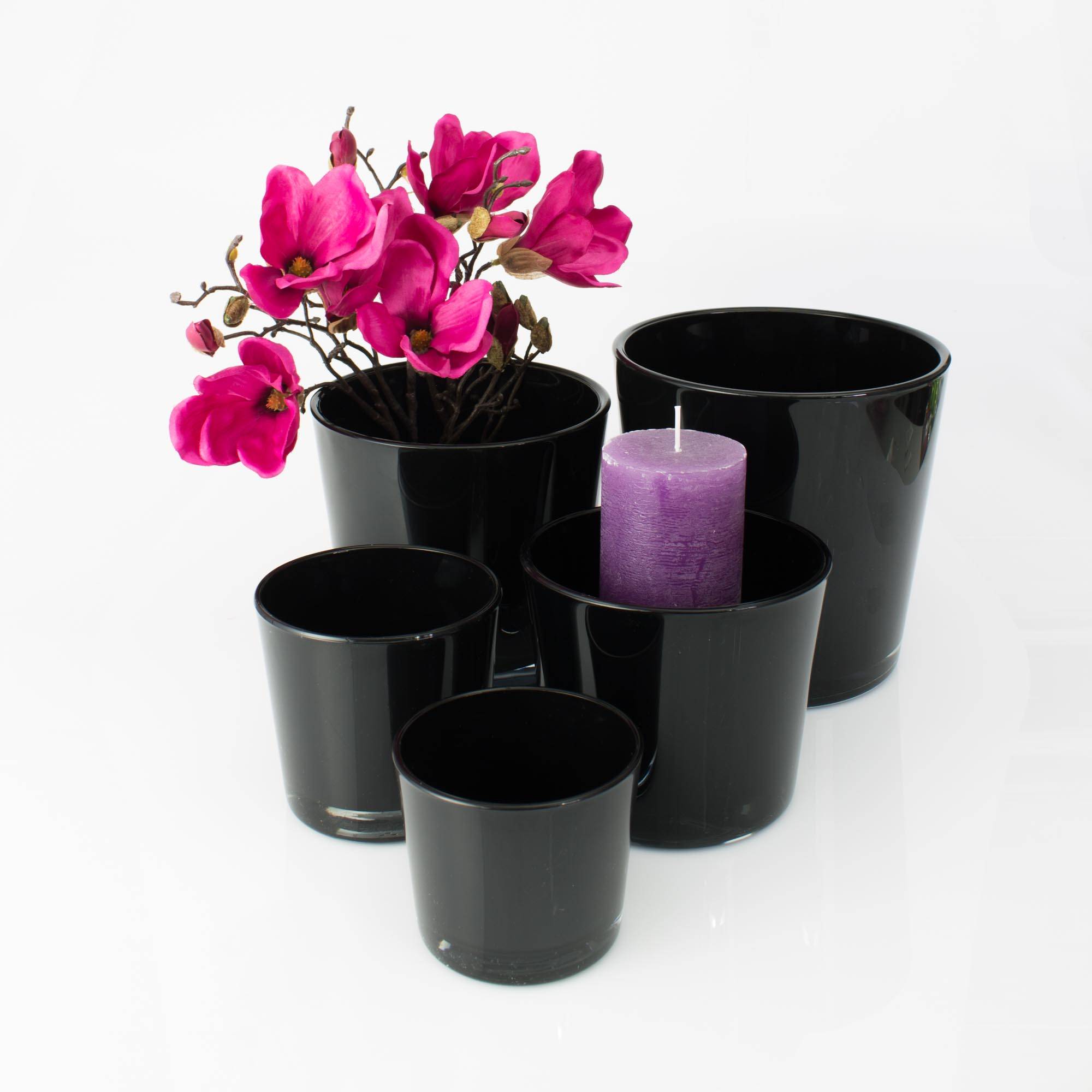 Plant pot made of glass ALENA, black, 7.5"/19cm, Ø7.3"/18,5cm
