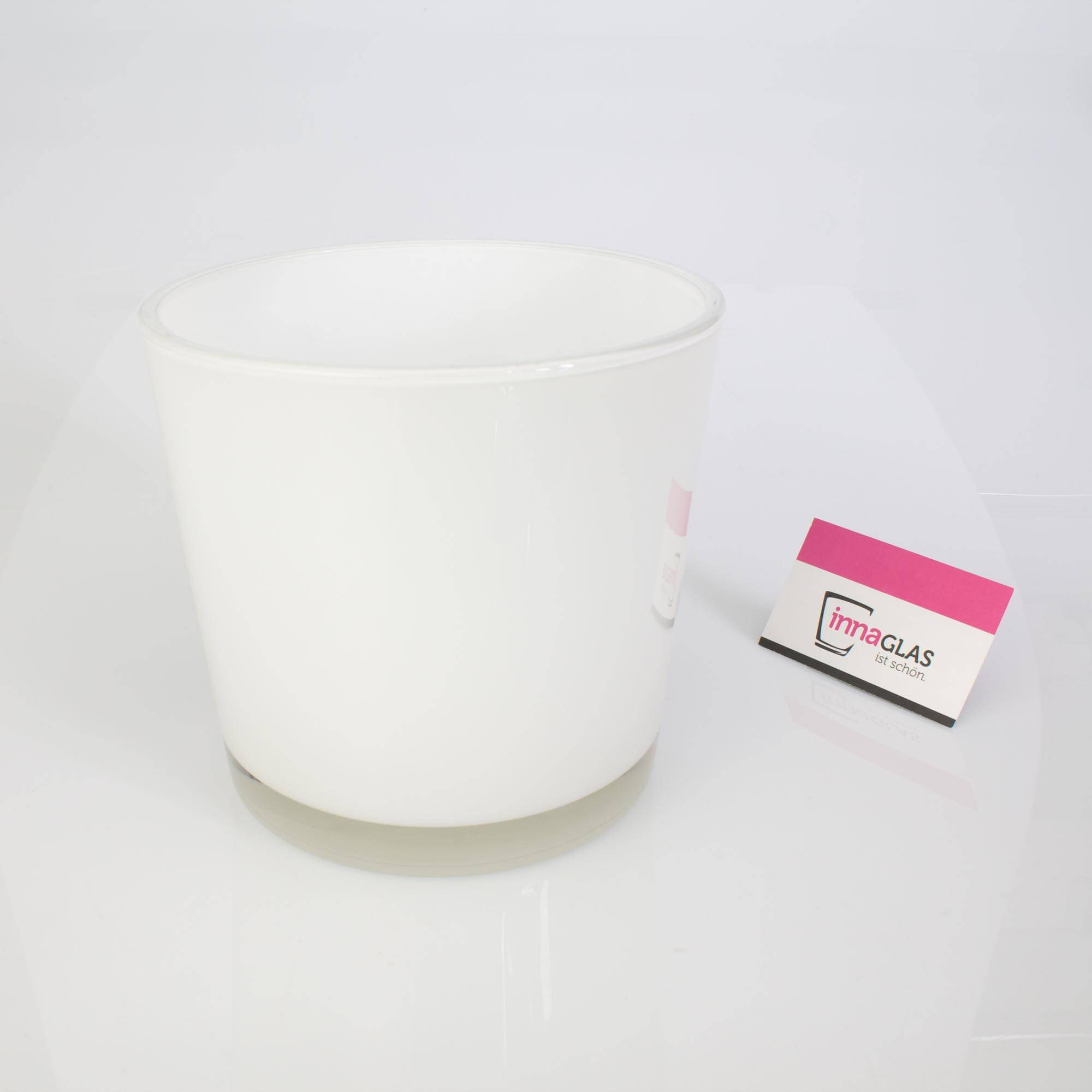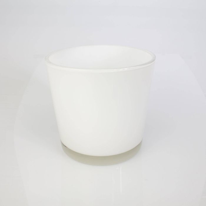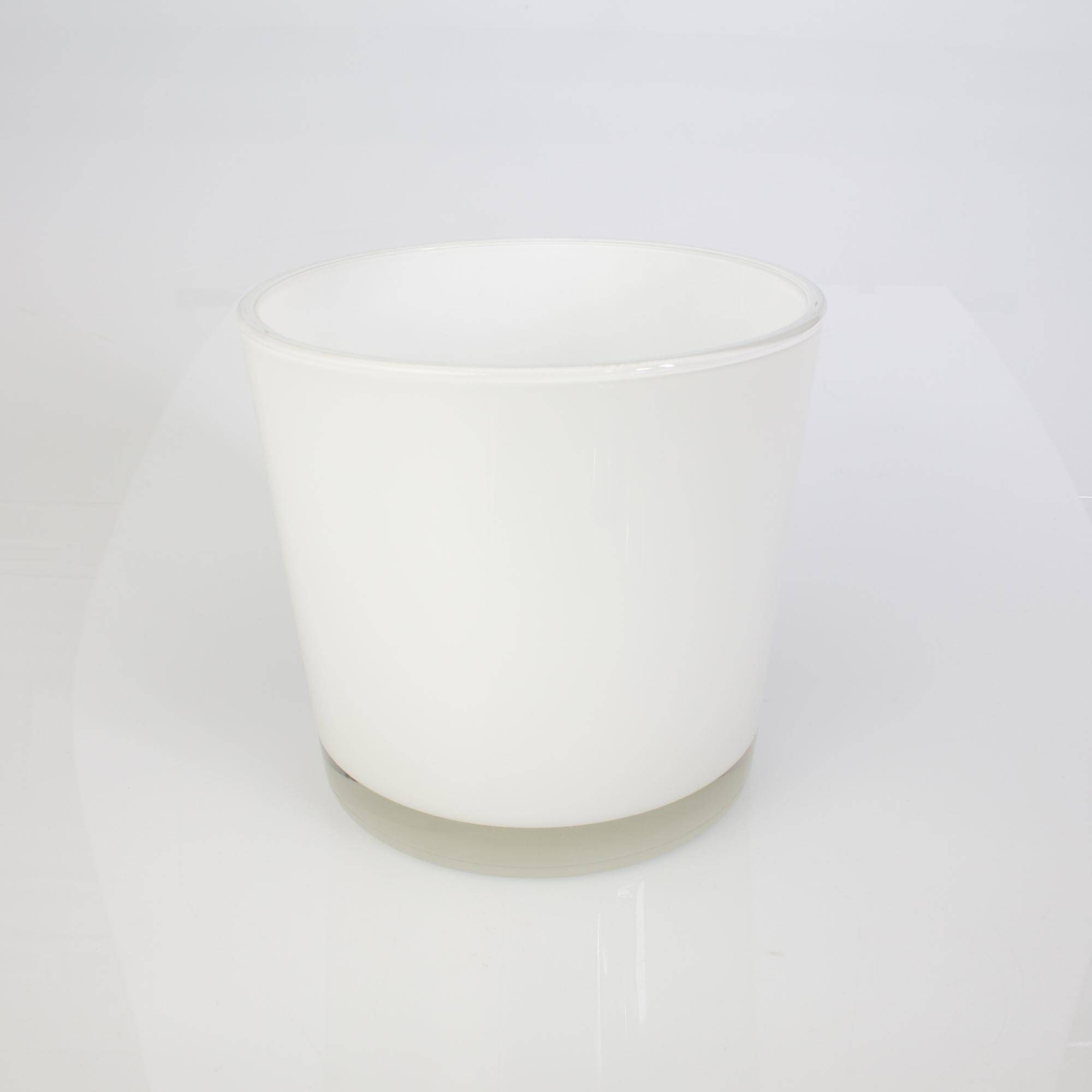 Planter ALENA of glass, white, 6"/16cm, Ø 7"/17cm