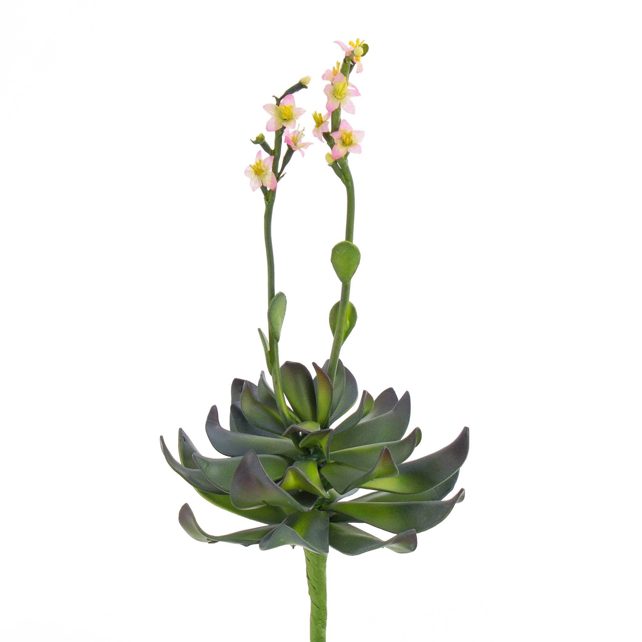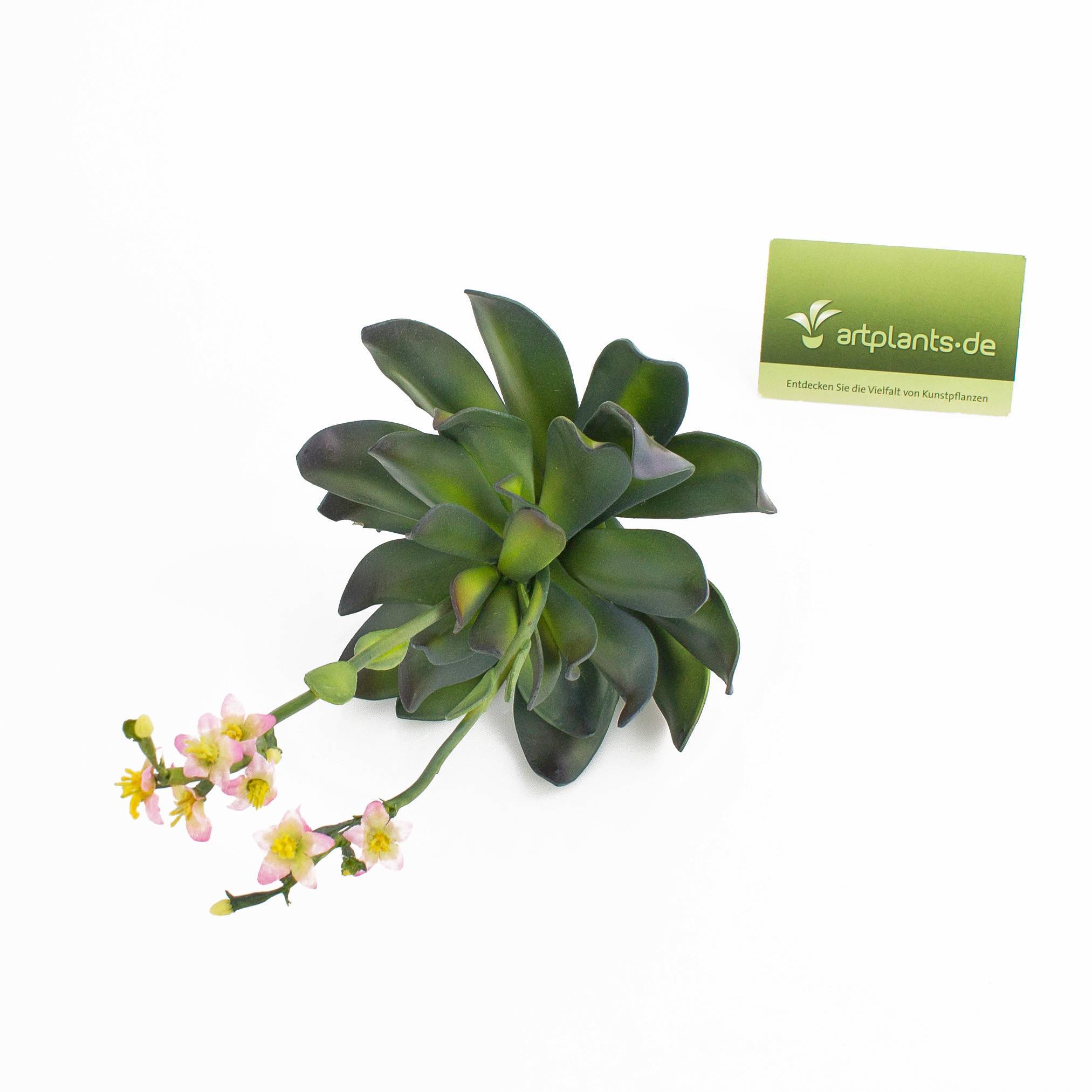 Artificial Aeonium on a spike with fleshy leaves and rose-coloured blossoms. The decorative plant stands approx. 12"/30 cm high.