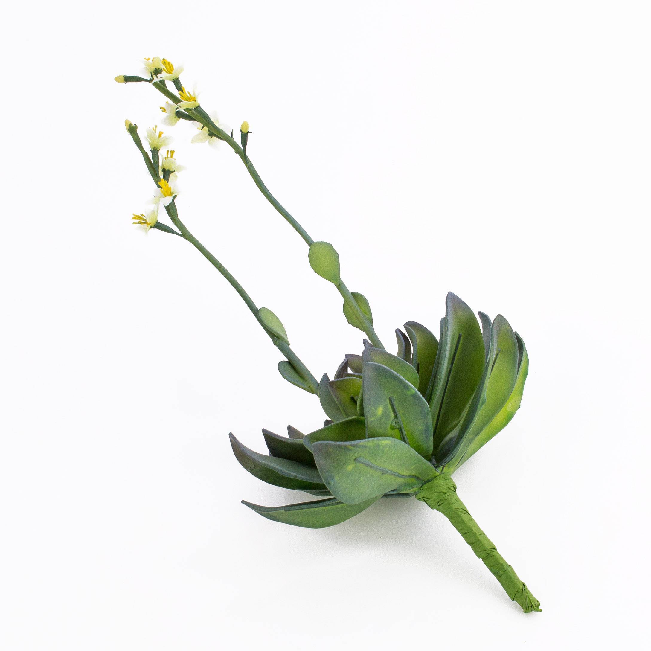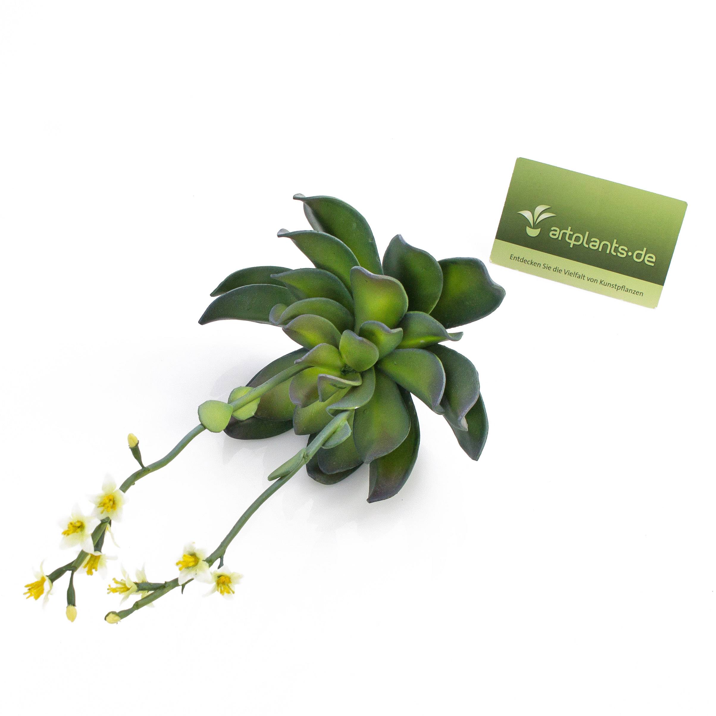Artificial Aeonium on a spike with fleshy leaves and yellow blossoms. The decorative plant stands approx. 12"/30 cm high.