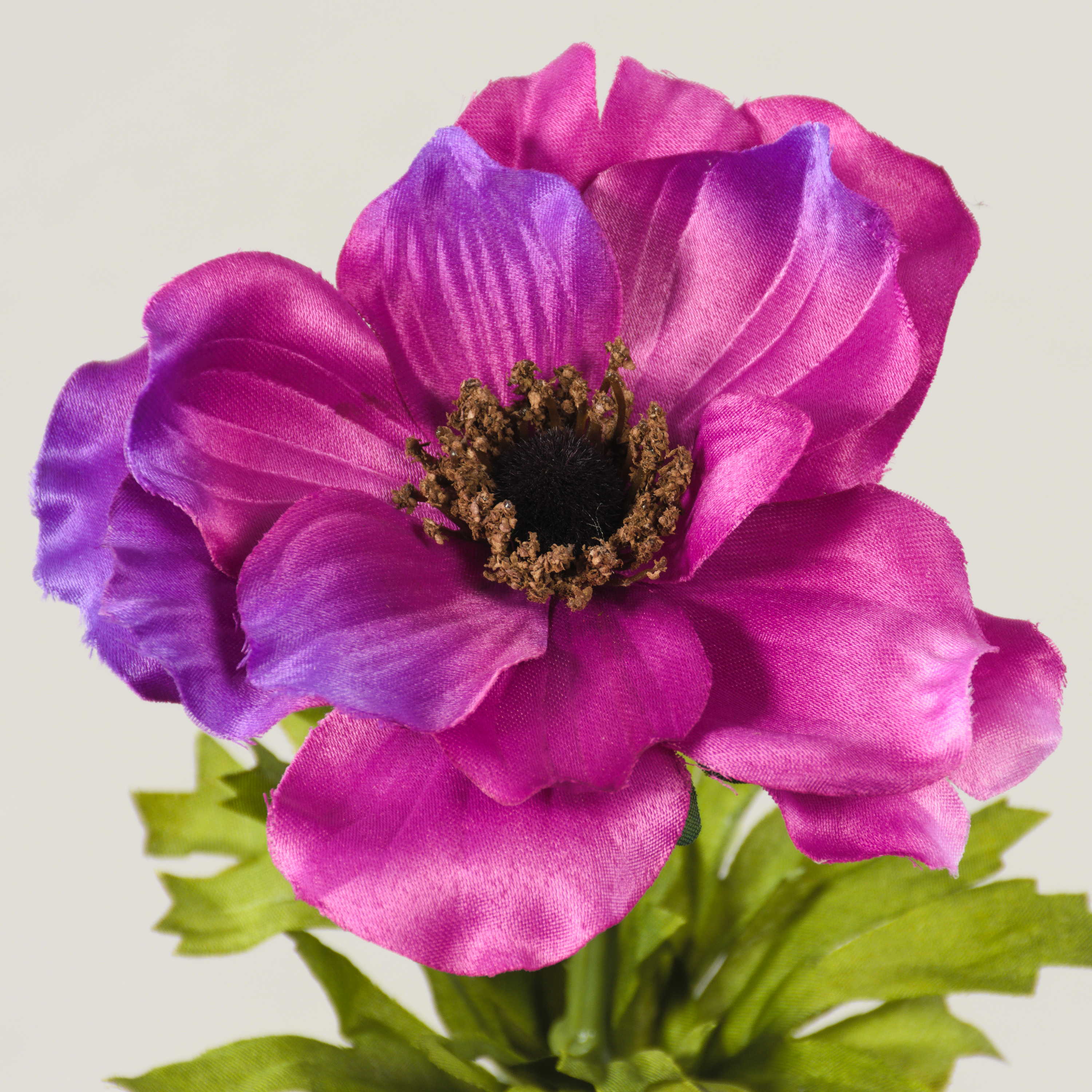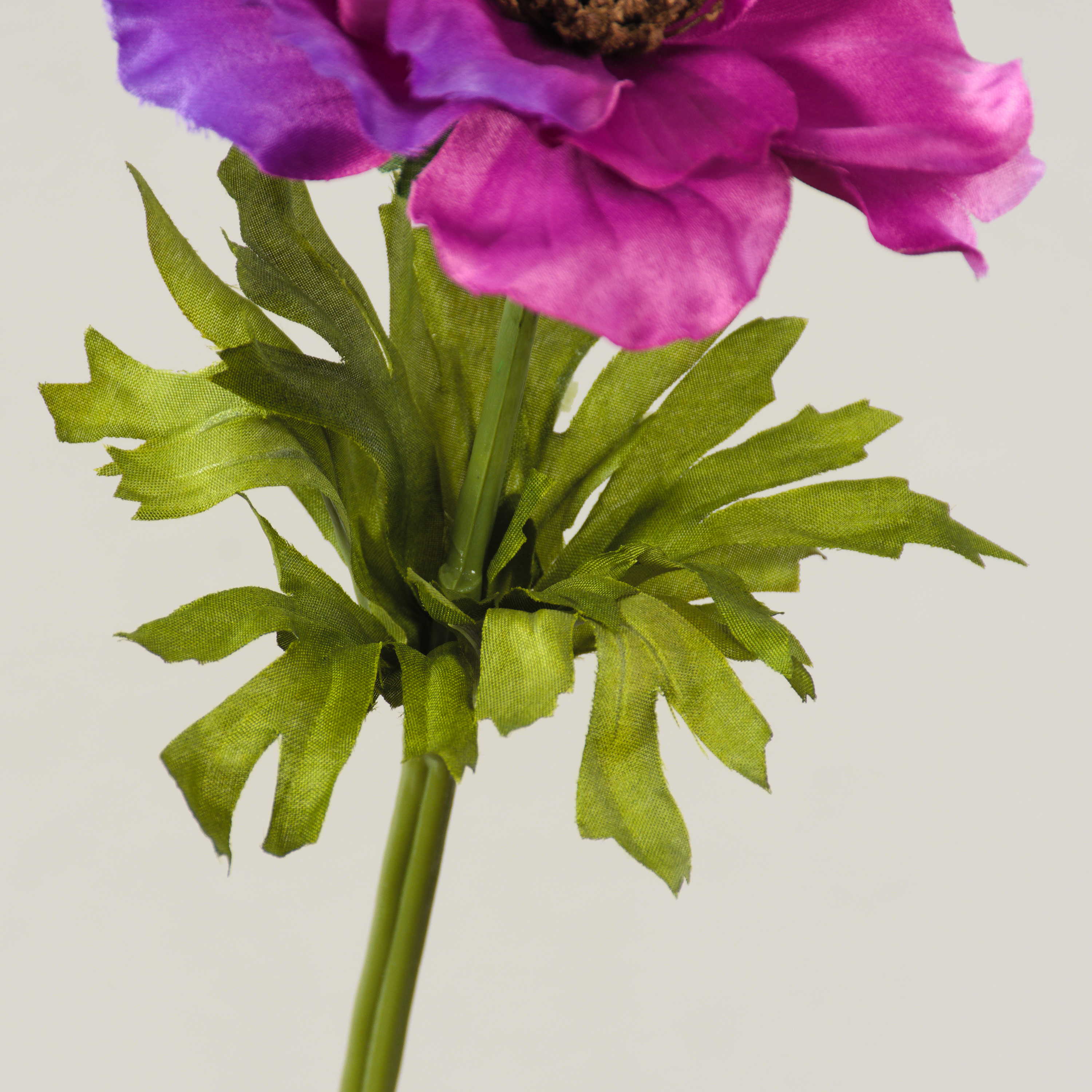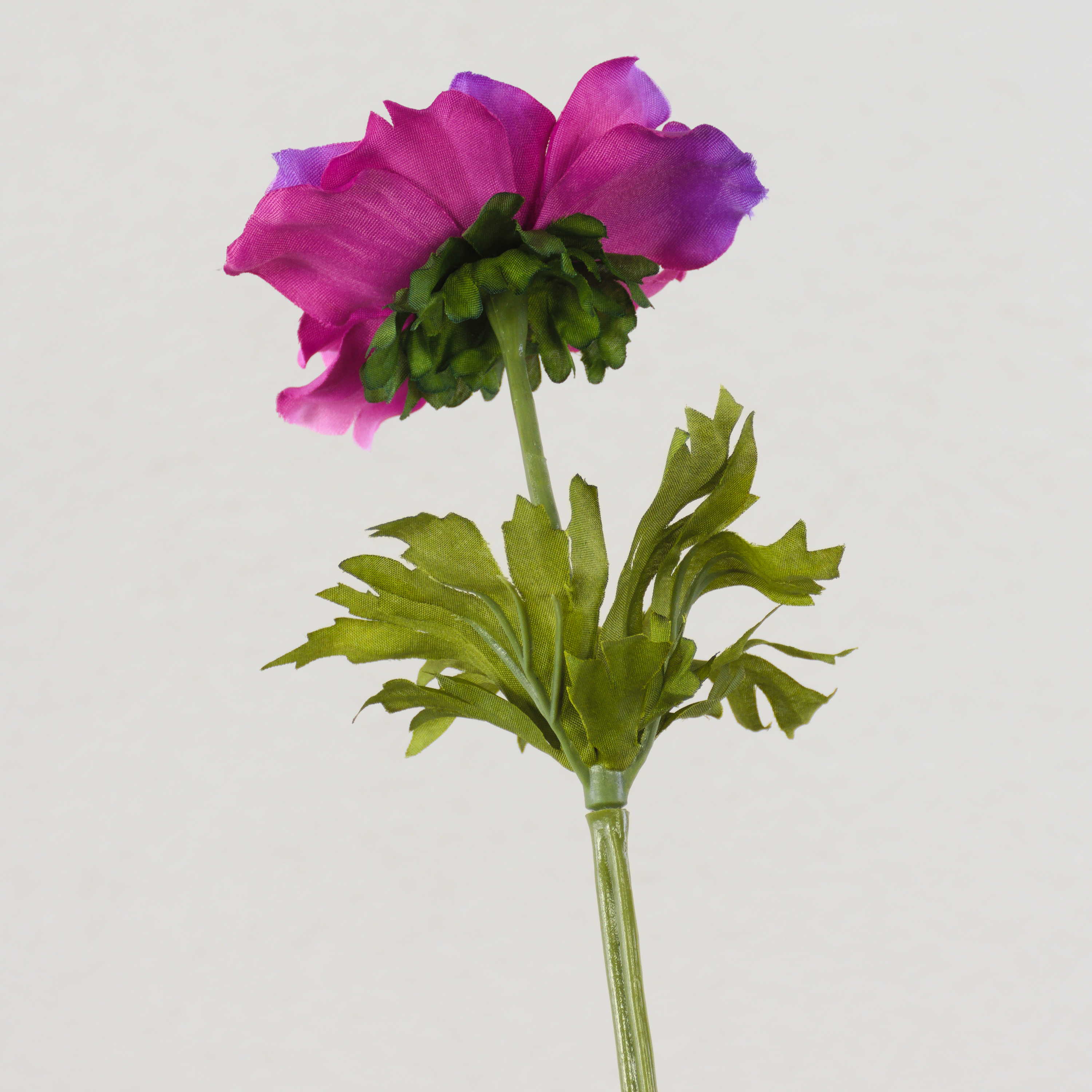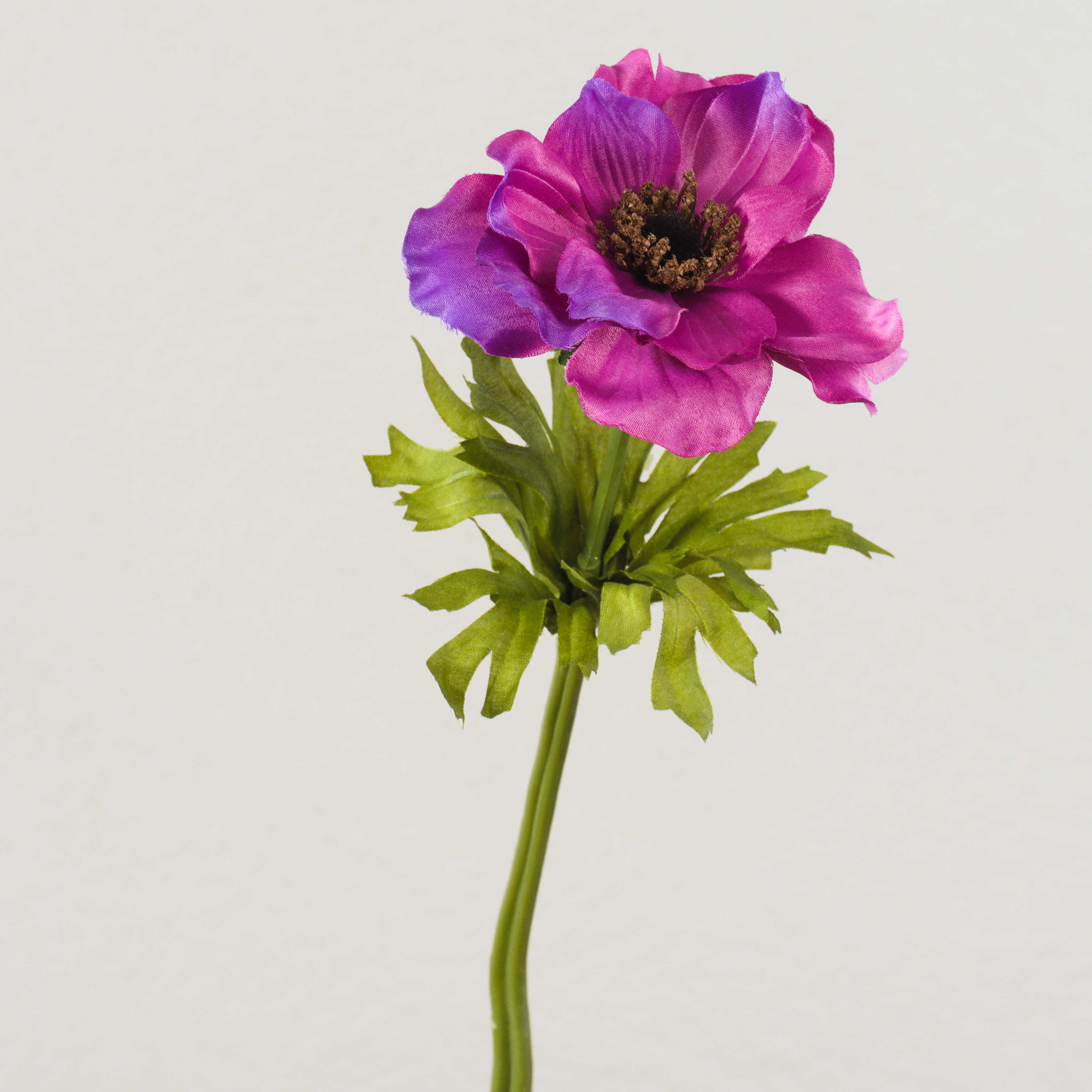 Decorative Anemone FRANCA in colour cerise. The flower has light green leaves and is 14"/35 cm long.