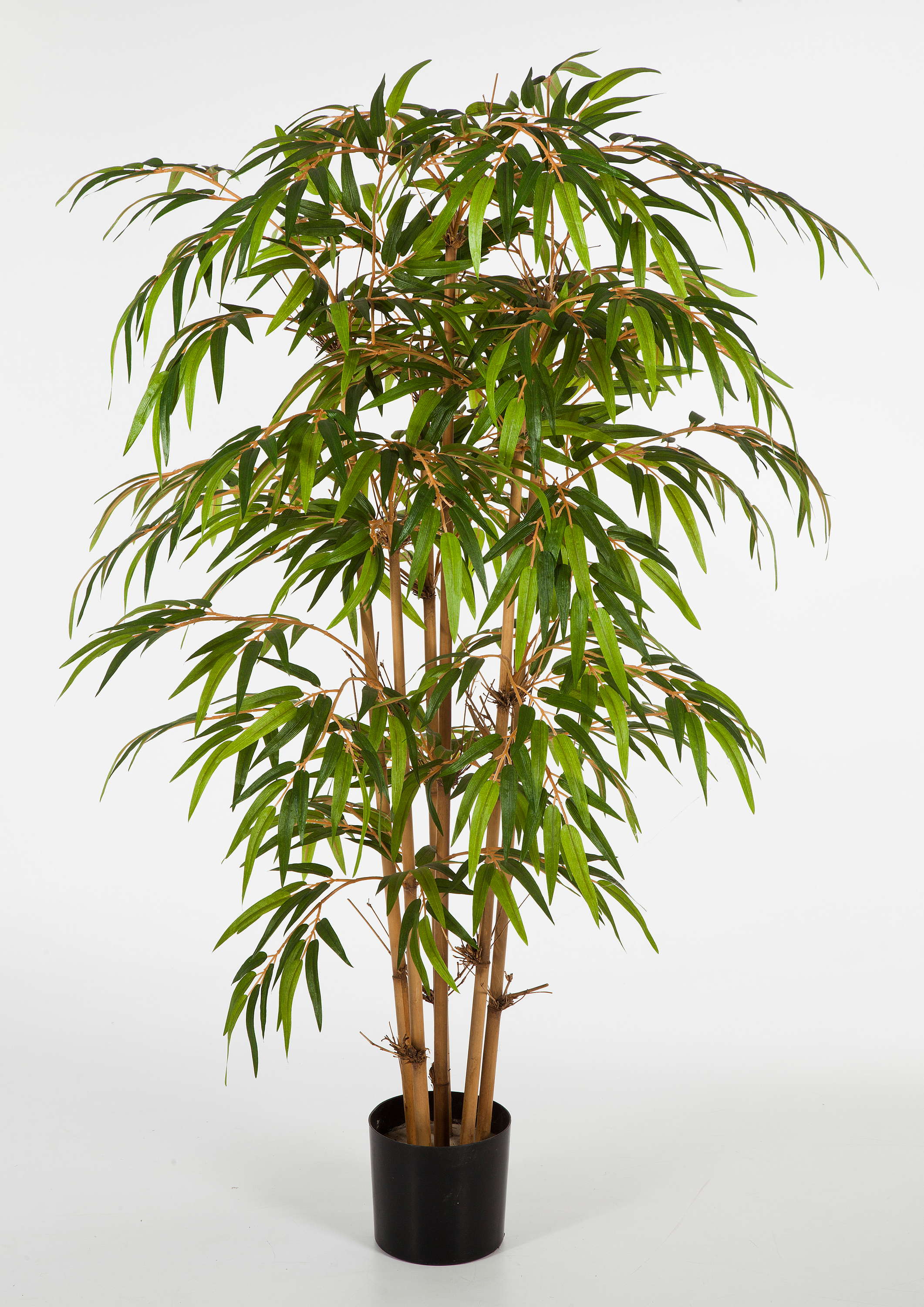 The stems of natural wood of the artificial bamboo HIROSHI along with the differently green leaves will ensure its natural appearance. The foliage of the approx. 4ft/150 cm artificial bamboo is finely crafted.