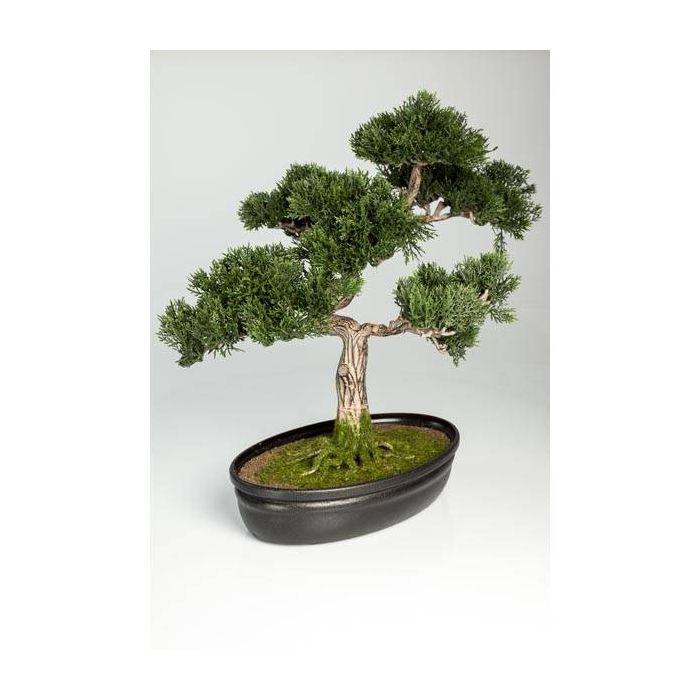 Artificial Bonsai Cedar with 230 high-quality crafted cedar branches and a total height of approx. 16"/40 cm. The Tree will be delivered in a beautiful black decorative planter.
