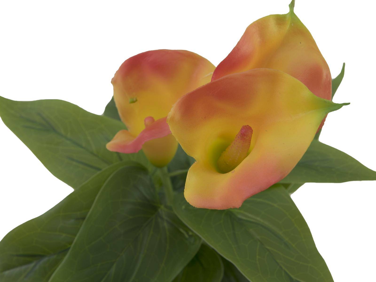 Plastic calla JAMILA decorative pot, orange-yellow, 16"/40cm, Ø1.6"x2.4"/4x6cm
