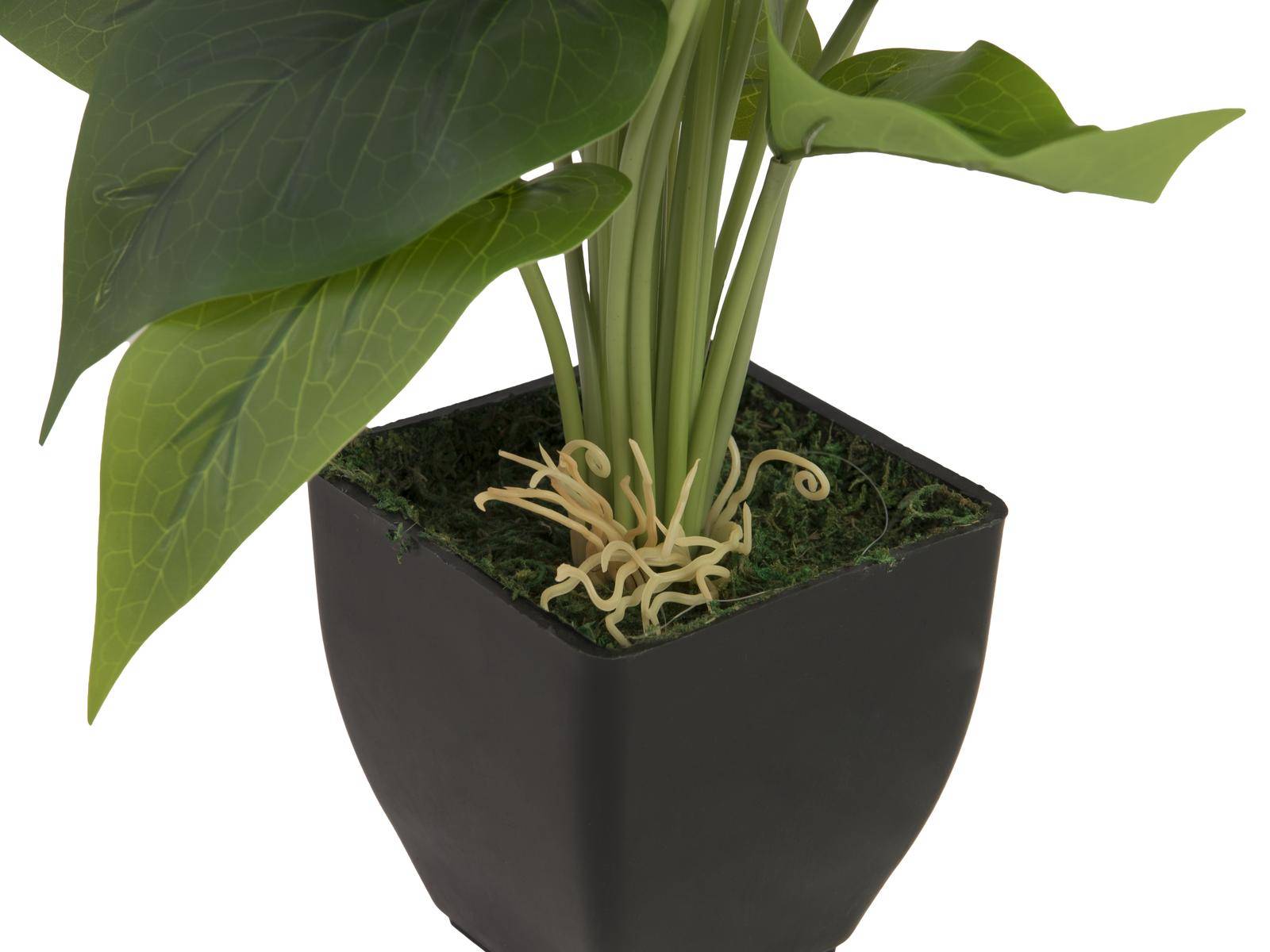 Elegant artificial flower JAMILA will captivate by 3 shapely flowers with a green-white colour gradient. The calla comes in a black decorative pot, from which numerous aerial roots can be seen between the moss. The small plant stands approx. 16"/40 cm high and will fit perfectly on your window sill.