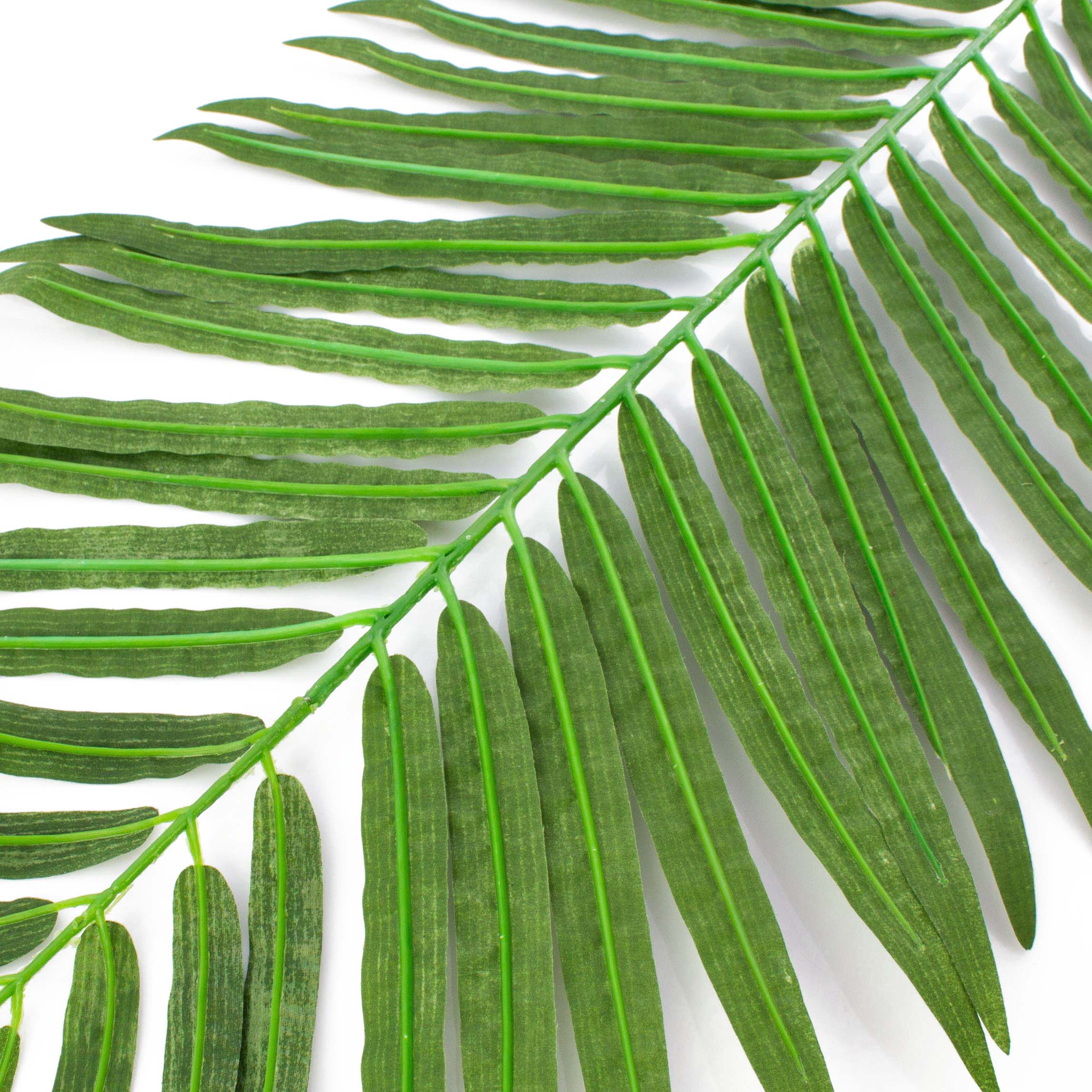 Naturally crafted coconut palm fronds are a great basis for table decorations, arrangements or other decorative projects. The artificial palm fronds are supplied in a set of 12, which gives you a variety of uses. With a length of 105 cm, the coconut fronds are easy to handle and can be combined with other artificial plants. The artificial fronds are finely crafted and yet robust, so let your imagination run wild.