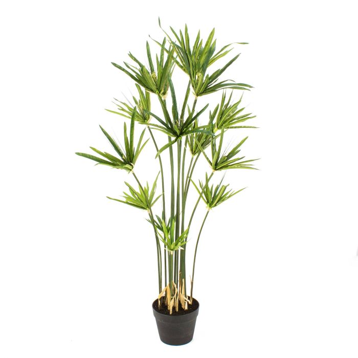Beautiful artificial Cyprus papyrus (Egyptian Paper Reed) in a pot. The green Cyprus papyrus grass stands approx. 6ft/180 cm high.
