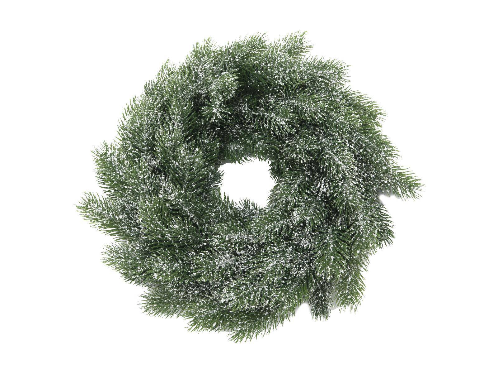 Artificial wreath made of snow-covered fir branches with an outer diameter of approx. 18"/45 cm. Ideal for winter and Christmas decoration and as an Advent wreath.