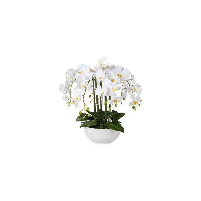 Plastic flower Phalaenopsis orchid KASDA, ceramic bowl, roots, white, 22"/55cm