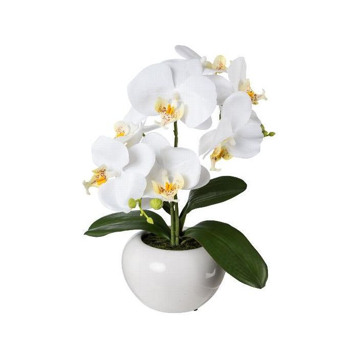 Plastic flower Phalaenopsis orchid KASDA, ceramic pot, white, 14"/35cm