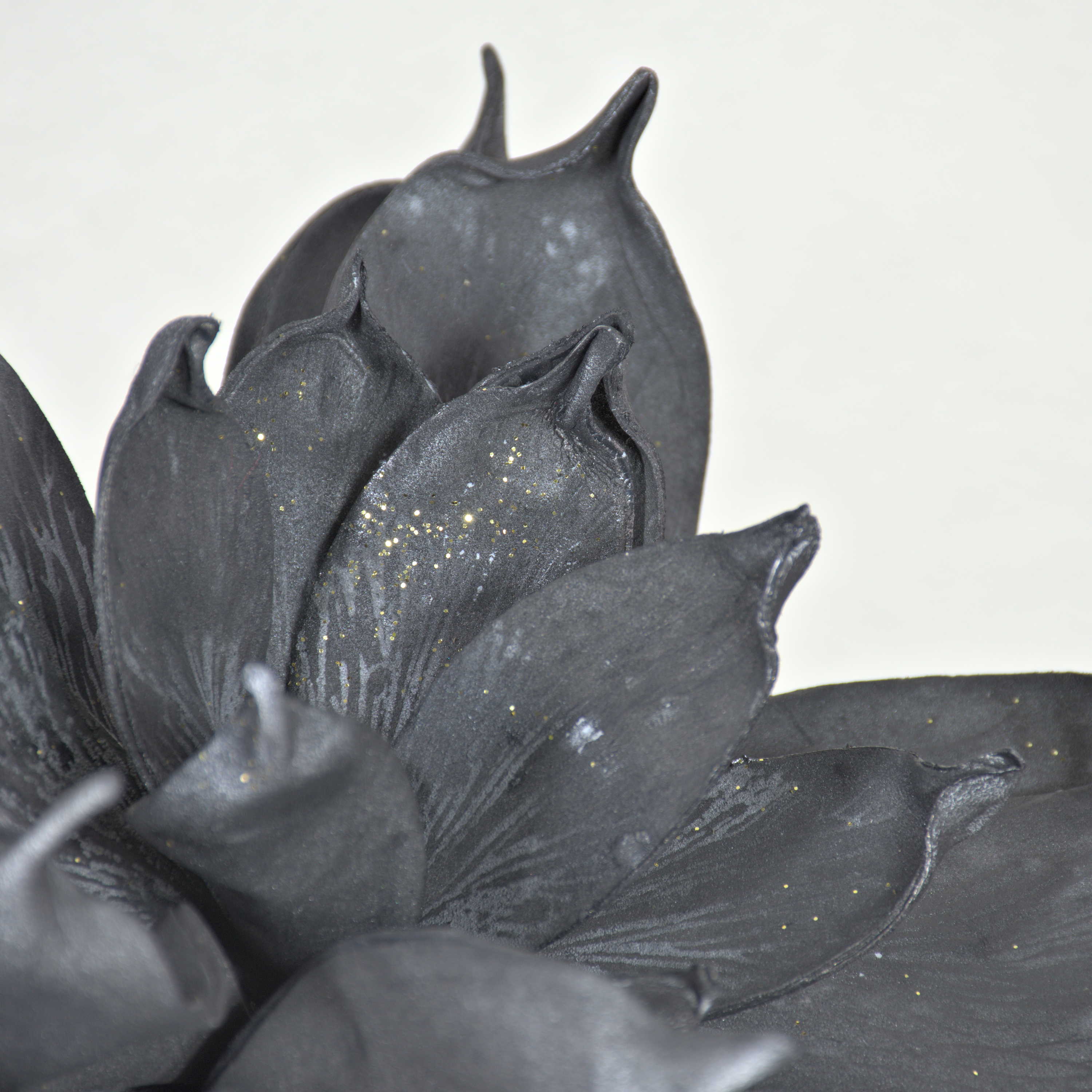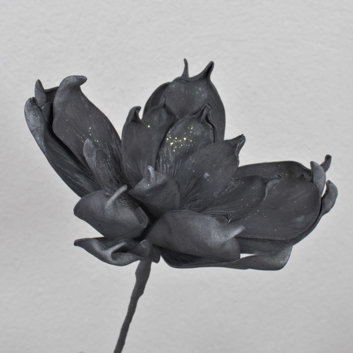 Plastic foam magnolia AMILIE, glitter, black, 12"/30cm, Ø10"/26cm