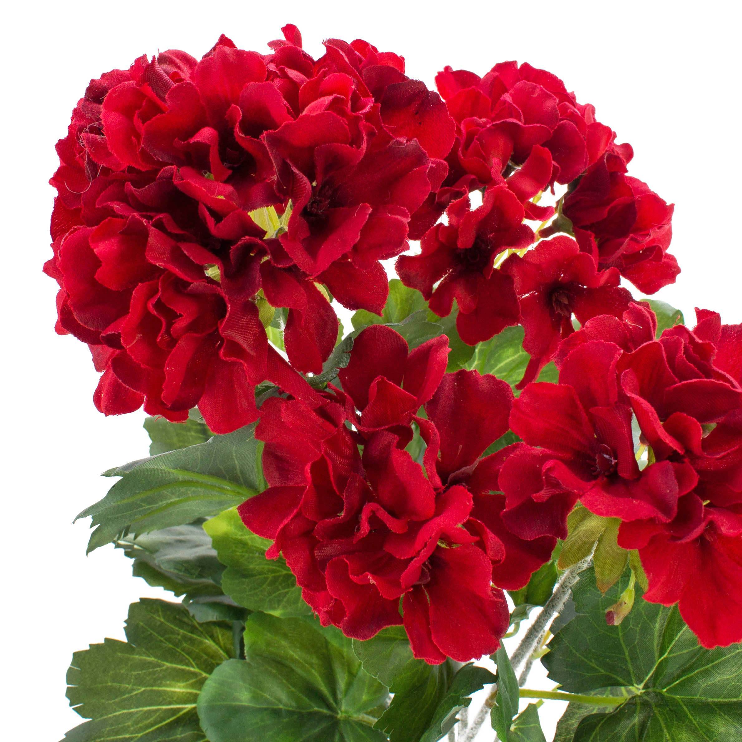 Pretty silk geranium MAIKE on spike with 5 dark red flower umbels and 33 finely veined green leaves. This artificial flower will be ideally suited as a lovely floral decoration in your home.