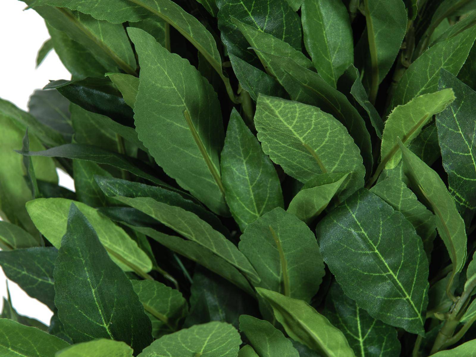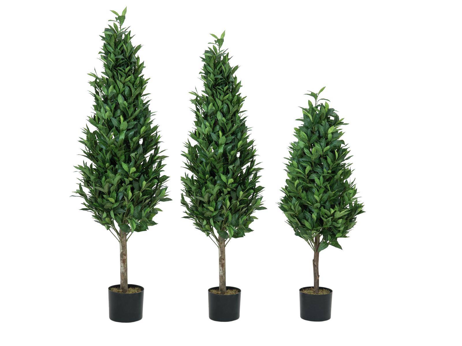 The artificial laurel GIUSEPPE is characterised by a long real stem with a cone-shaped tree crown in colour green. The decorative tree will decorate canteens and living rooms in a nice way thanks to its height of approx. 6ft/180 cm.