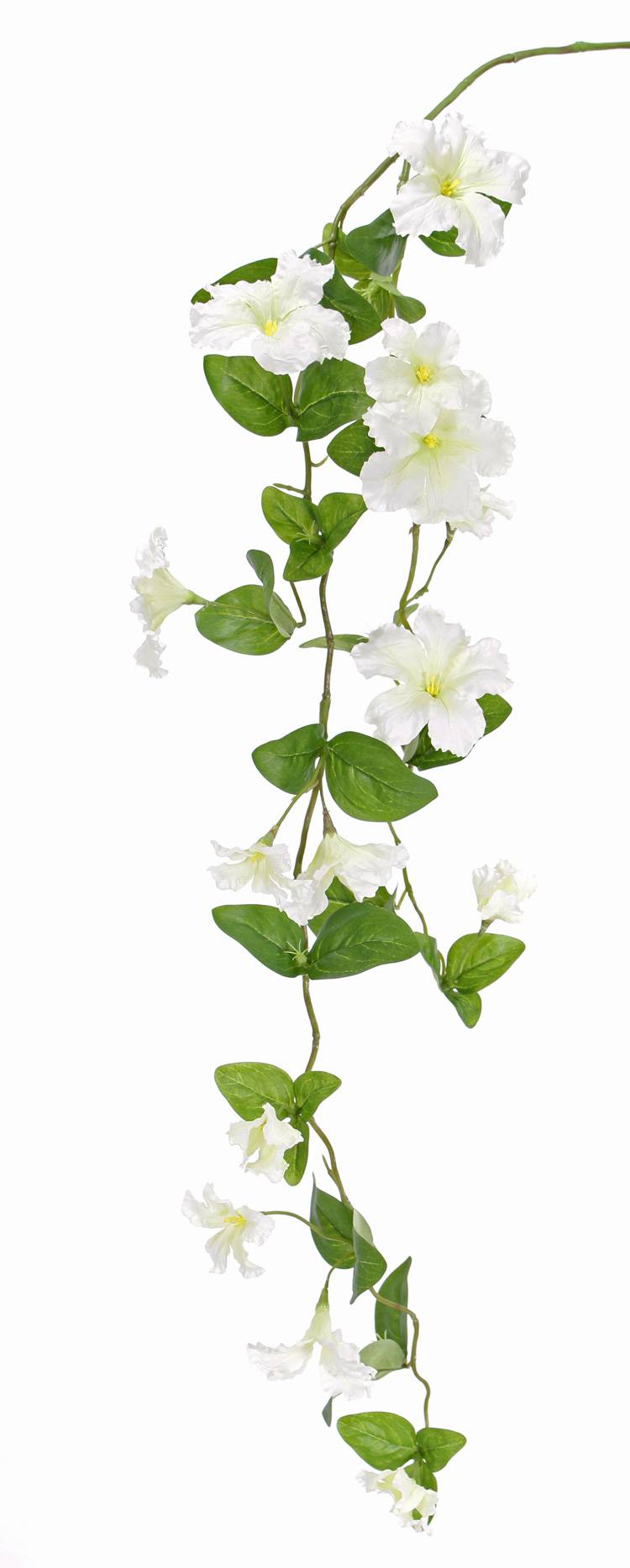 Plastic petunia branch MARTHE, white-green, 4ft/130cm