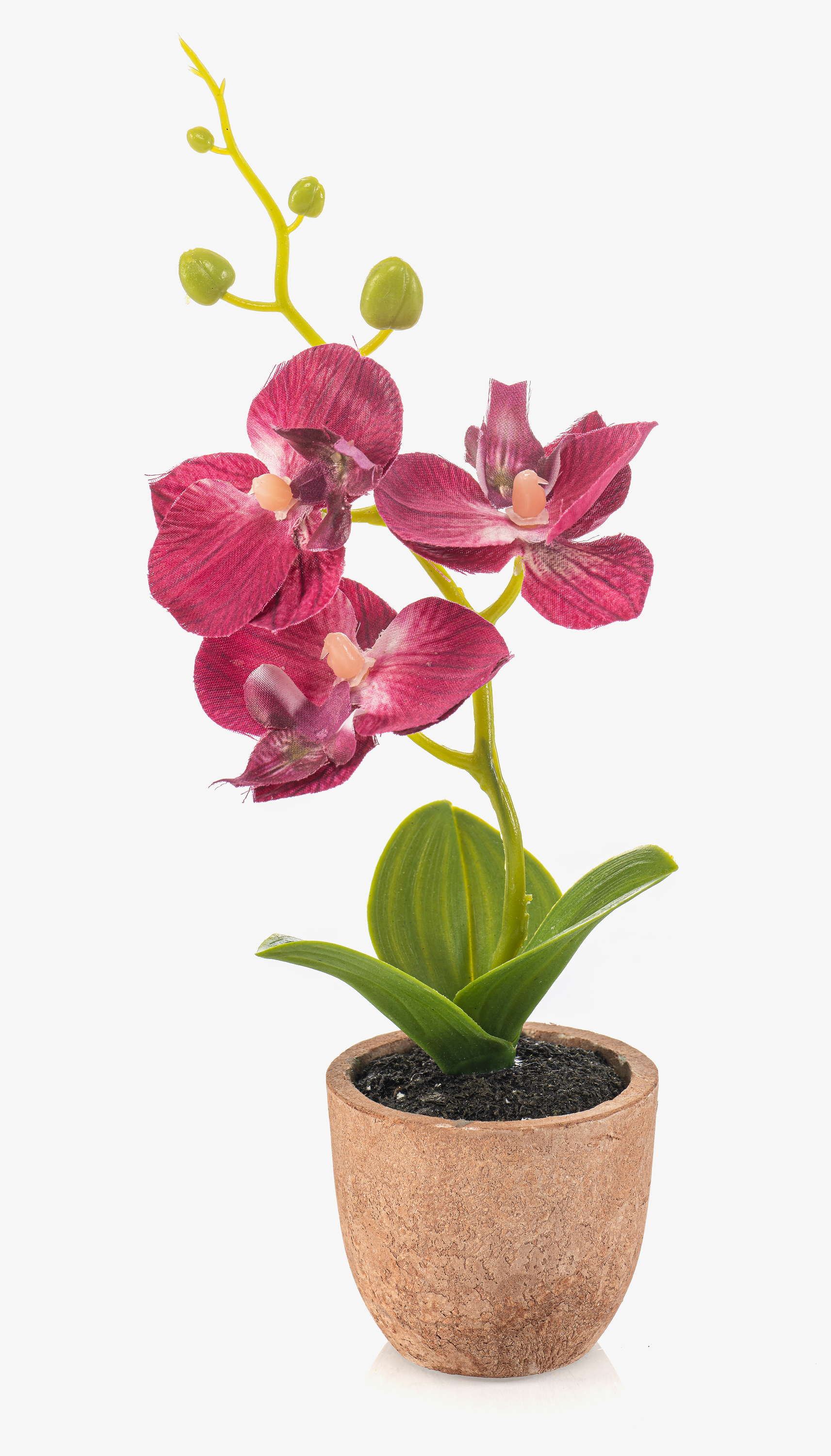Plastic Phalaenopsis orchid LEONISA in terracotta pot, fuchsia, 8"/20cm